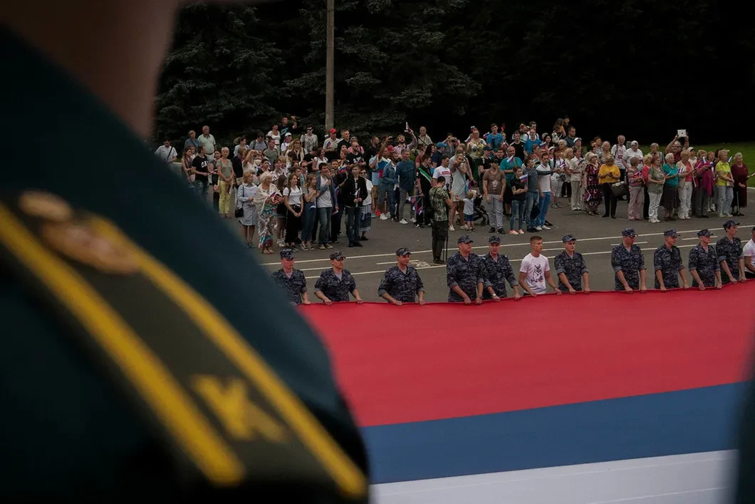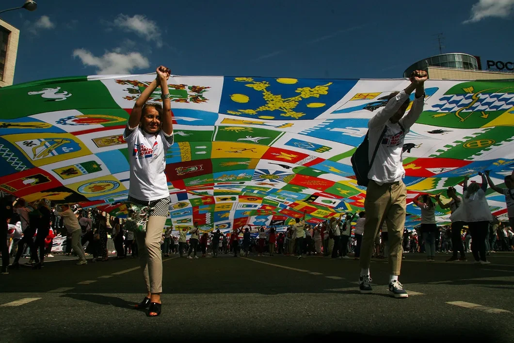 К слову, на прошедших несогласованных акциях оппозиции триколор вызывал какую-то особую злость росгвардейцев — людей с флагами задерживали без объяснений в первую очередь. А в субботу на Сахарова даже состоялся флешмоб — сотни человек растянули гигантское полотно из двух тысяч флагов городов России и общественных организаций. Когда флешмоб закончился, они, не задерживаясь ради концерта российских поп-артистов, массово потянулись к выходу.