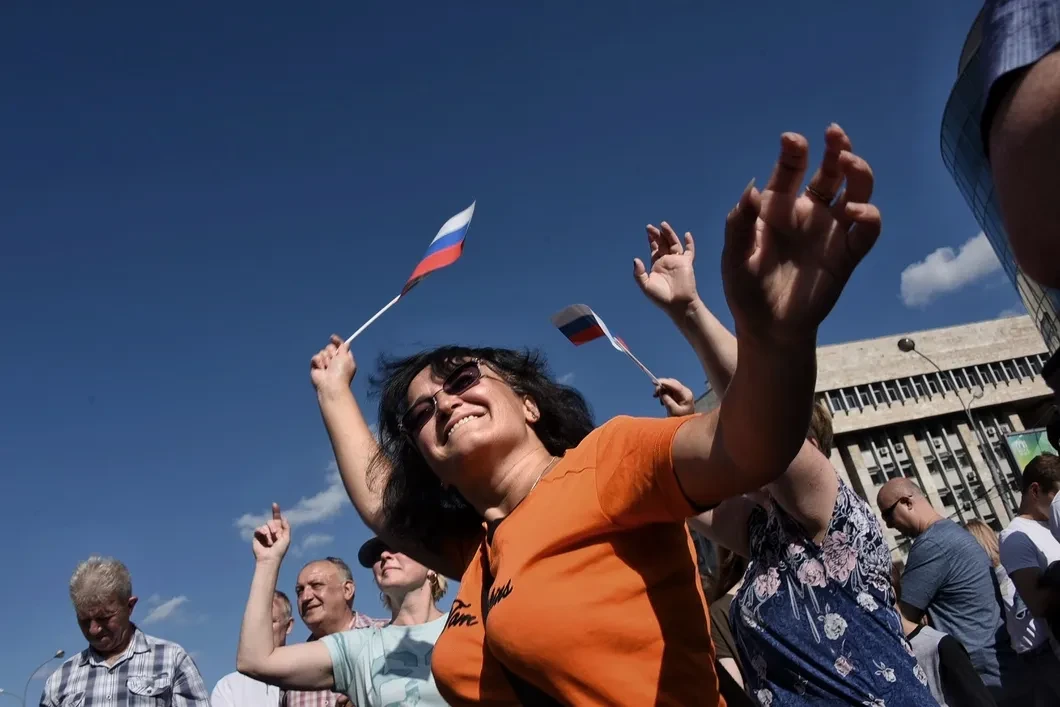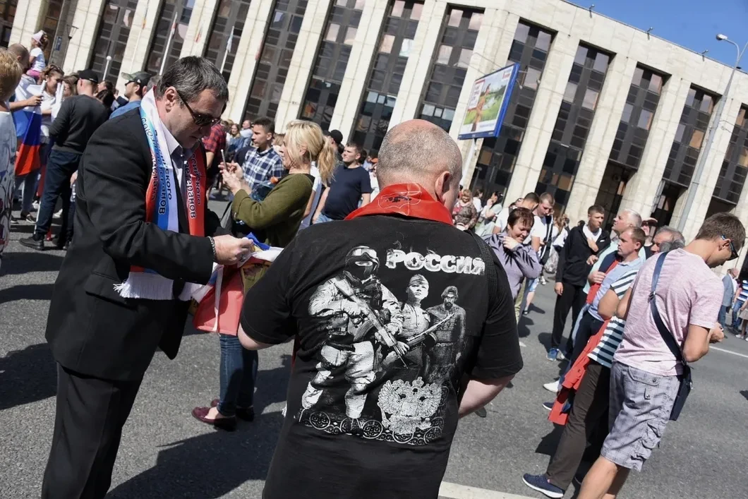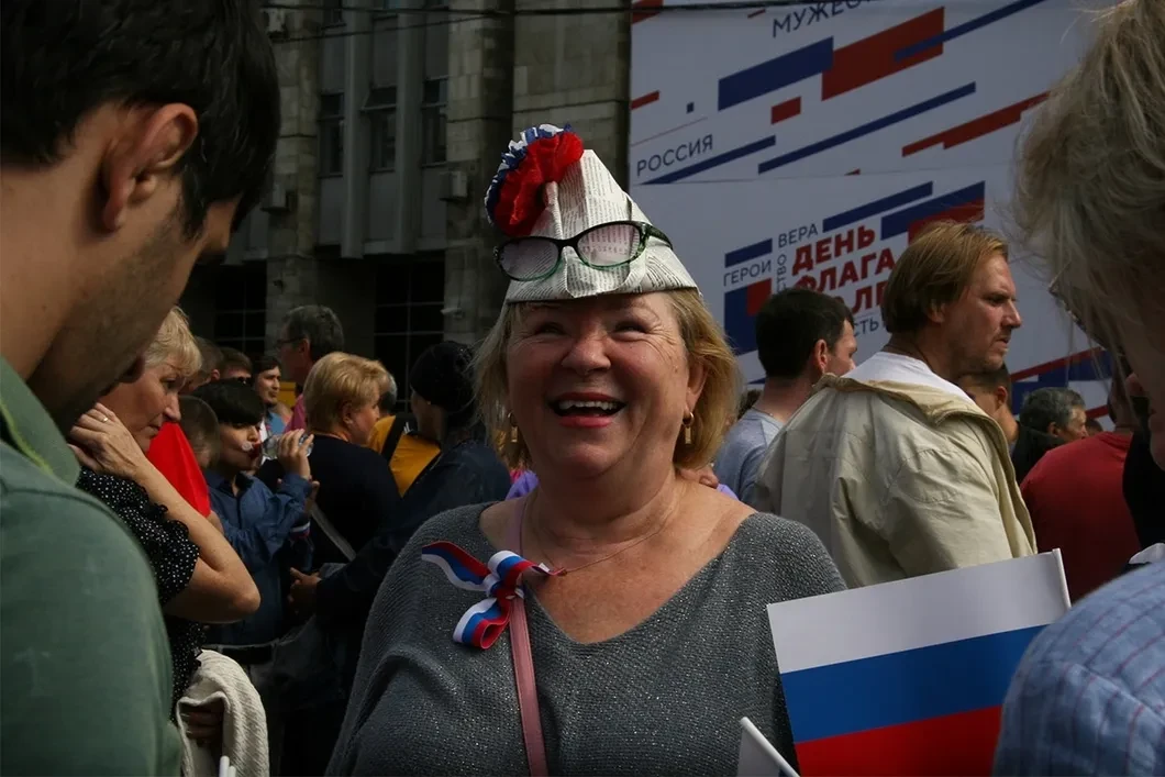 В День российского флага сто тысяч человек вышли на Сахарова добровольно, хоть и не самостоятельно