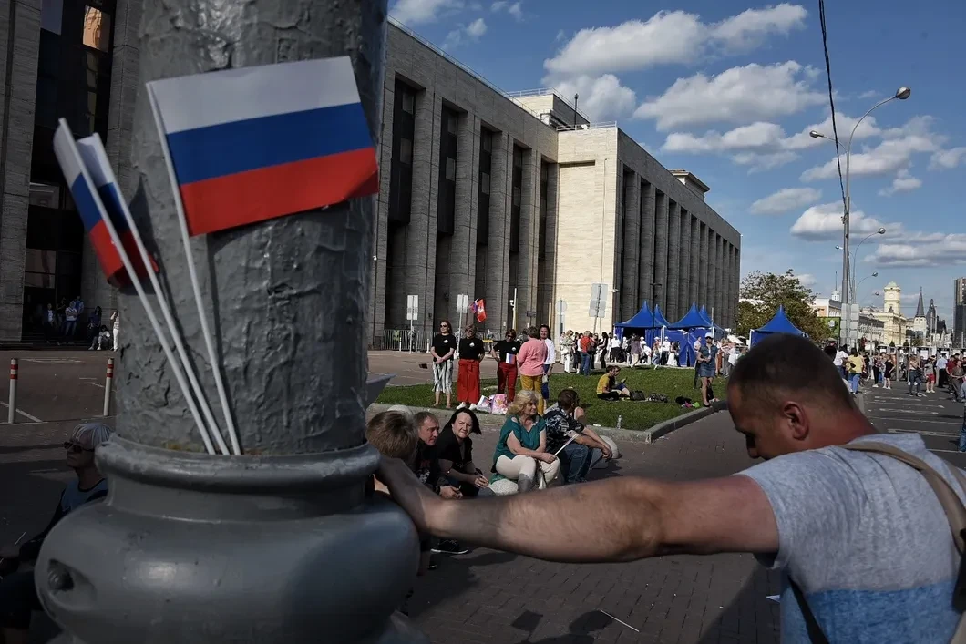 Две недели назад на проспекте Сахарова более 50 тысяч человек требовали честных выборов и освобождения арестованных по делу о «массовых беспорядках». В субботу на том же месте — более 100 тысяч отмечали 350-летие российского флага. Многие из пришедших ничего не слышали ни о событиях последних недель в столице, ни о выборах в Мосгордуму. Корреспондент «Новой» не встретила ни одного «самостоятельного» гражданина на митинге-концерте — люди приезжали централизованно на автобусах, «организациями», часто из области.