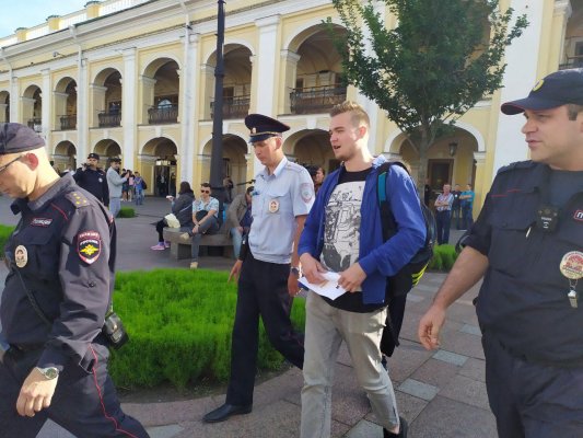 UPD 15:50 Активиста, которому вменяли статью 19.3 КоАП, уже отпустили на свободу. Он вернулся на Гостиный двор, где продолжил пикетирование, сообщает телеграм-канал «ЯГражданин!».