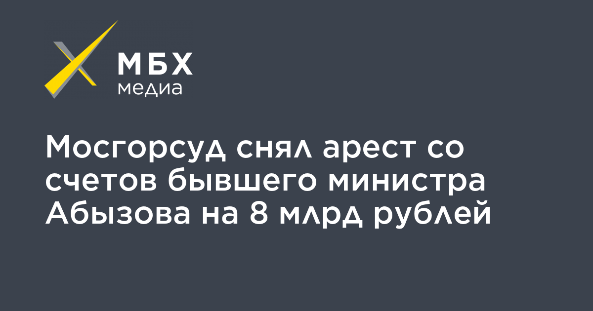 Мосгорсуд снял арест со счетов бывшего министра «Открытого правительства» Михаила Абызова на 8 млрд рублей. Об этом сообщил ТАСС. Адвокат Сергей Дрозда пояснил, что счета со 121 млн евро были заблокированы ошибочно.