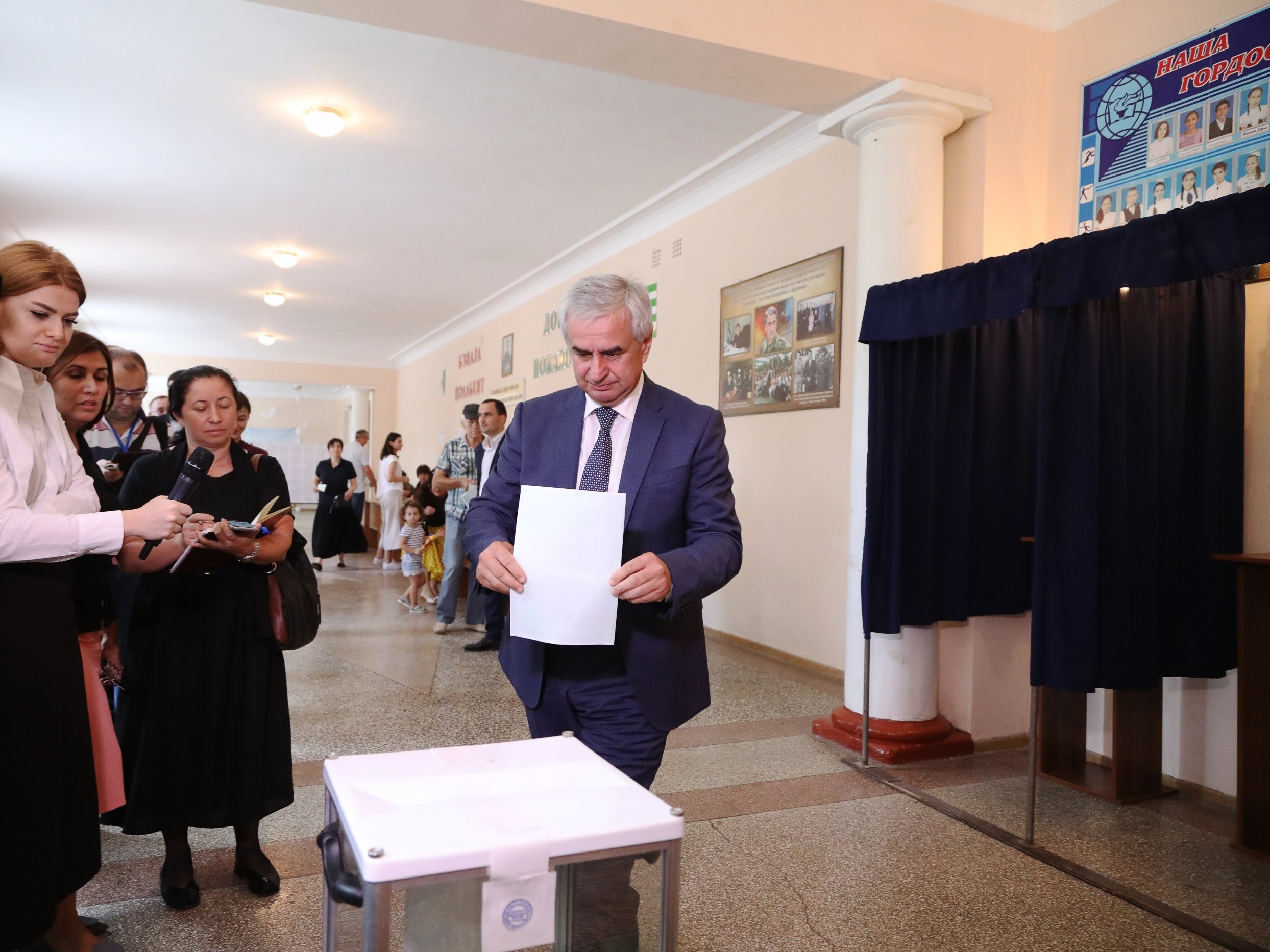 Председатель Центральной избирательной комиссии республики Тамаз Гогия заявил, что выборы признаны состоявшимися, поскольку явка достигла 56% при пороге в 50%. Никаких предварительных итогов первого тура ЦИК Абхазии пока не подводил.