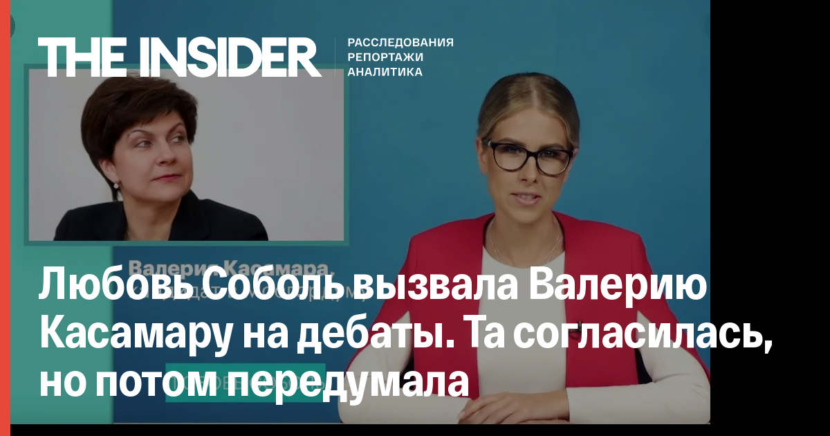 Обновлено: позднее в своем Telegram-канале Касамара написала: «Дебаты как форма политического диалога предполагают равенство участников. Мы с Любовью Соболь находимся заведомо в неравных позициях, а значит политические дебаты между нами невозможны. Но я готова начать с ней диалог в более спокойной обстановке, когда политические страсти улягутся».