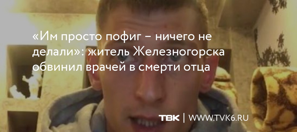 Житель Железногорска Максим Кыхтев записал обращение к медикам местной клинической больницы (КБ-51), обвинив их в смерти отца. Видео он разместил на своей странице в социальных сетях, требуя разобраться и провести проверку.