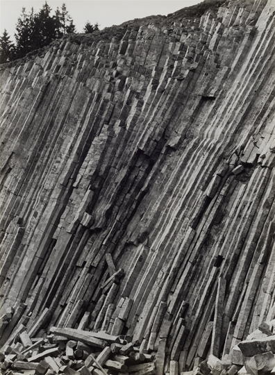 Альберт Ренгер-Патч. Базальт в Айфеле (из серии «Скала»). 1962 В этом смысле художники опередили философов. Отказавшись от миметического копирования (но не от фигуративности и предметности), исходя не из платоновского метафизического понимания вещи как тени, никогда не достигающей идеала, авторы «Новой вещественности» предприняли попытку создания автономной художественной реальности. Такой поворот к онтологическому, когда вещь рассматривается сама по себе, позволил художникам снять противопоставление старого и нового, естественных и искусственных структур, которые одновременно иные и прежние: «el otro, el mismo» по Борхесу. Так, используя укрупненную форму и прием серийного сопоставления, взятый Карлом Блоссфельдом из научной иллюстрации, другой фотограф «Новой вещественности» Альберт Ренгер-Патч открыл, как пересекаются и переходят друг в друга природные и технологические порядки.