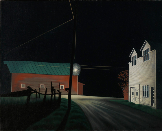 И все же от кураторов не первый раз ускользает тот факт, что обращение к теме безлюдного локального ландшафта было ключевым шагом, прежде всего, для американских прецизионистов — в частности, для Джорджа Коупленда Олта. Картины Олта очевидно близки снимкам Вессела своей доминирующей магической атмосферой, которая уравнивает спонтанную органику рельефа местных пейзажей с условной жесткостью hard-edge геометрических объемов типовых жилых домов.