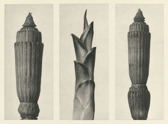 Карл Блоссфельд. Из серии «Urformen der Kunst». 1928 Земпер полагал, что появление некой утилитарной потребности ведет к созданию соответствующей конструкции, которая после преображается под влиянием архетипов симметрии, пропорциональности и ритма, имманентно присущих природе. Таким образом, вещи раскрывали не только свои практические функции, но и духовное значение. Уже в совсем другую эпоху Мартин Хайдеггер в эссе «Вещь» выразил беспокойство относительно того, как за всеобщей модернизацией мы не видим самой вещи. Если в основе теории Земпера решающее значение придавалось материалу, технике и функции, то Хайдеггер обозначил противоположную позицию. Сущность хайдеггеровской вещи невозможно понять, если рассматривать ее как предмет в поле научного познания, где она невидима, как определяющая действительность. Но она и не символ. Вещь — само присутствие мира, а не изображение его образа или смысловой перспективы.