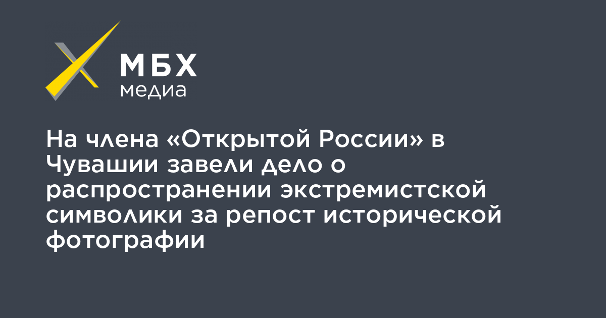 На члена регионального совета «Открытой России» в Чувашии Михаила Щеглова завели дело о распространении экстремистской символики за репост исторической фотографии во «ВКонтакте». Об этом «МБХ медиа» сообщил юрист «Правозащиты Открытки» Юрий Сидоров.