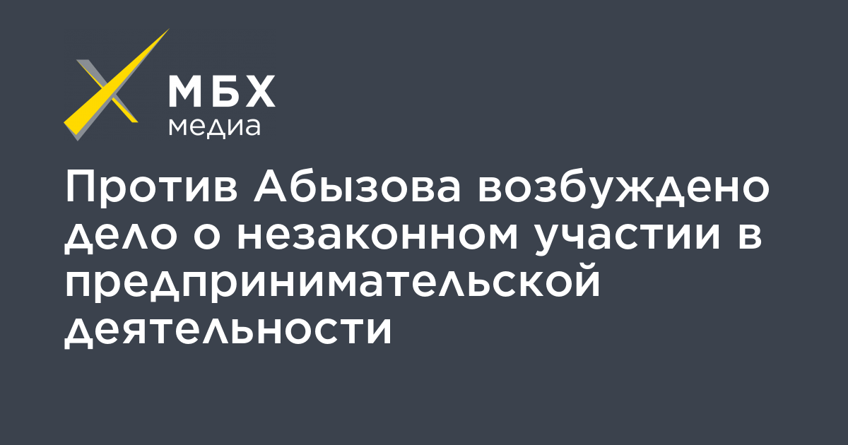 Против Абызова возбуждено дело о незаконном участии в предпринимательской деятельности