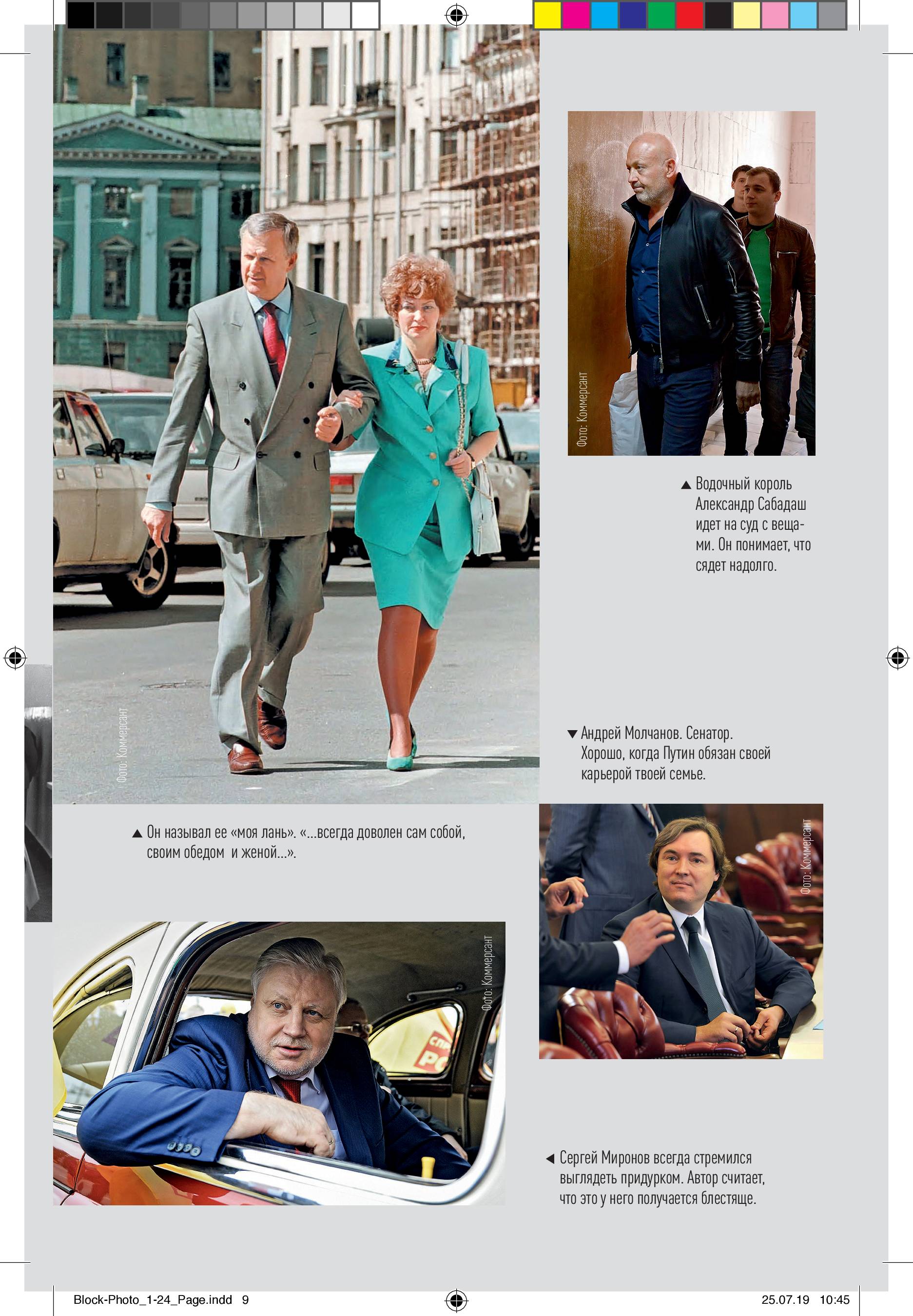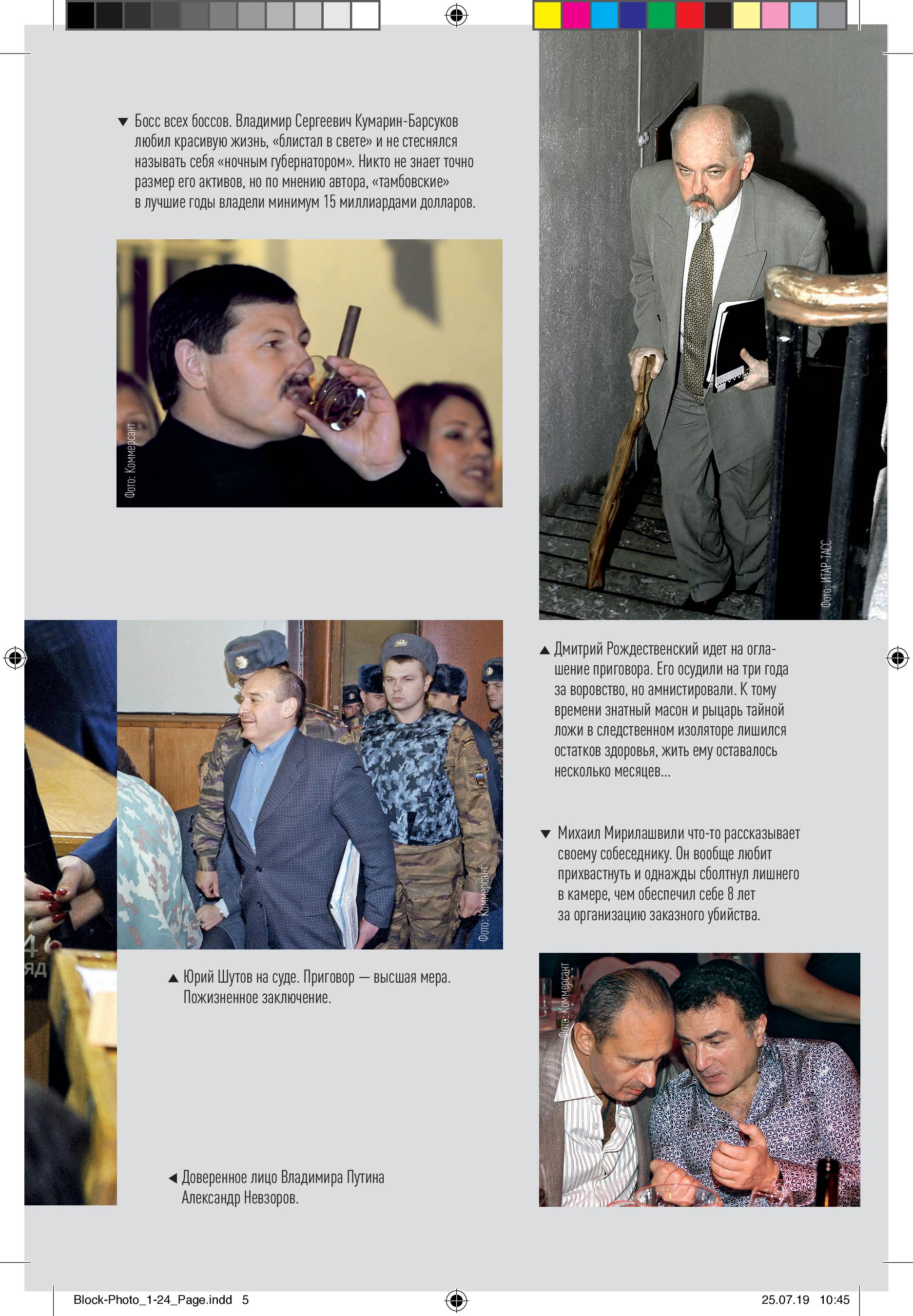 Книга изобилует массой деталей – от того, по каким схемам, по данным автора, разворовывались деньги в Балтийском морском пароходстве, до состава начинки пельменей, производившихся в Петербурге в 1990-х. Там фигурируют как ныне здравствующие, так и ушедшие уже в мир иной (умершие своей смертью или, чаще, убитые). Президент России Владимир Путин, председатель правительства Дмитрий Медведев, вице-премьер Виталий Мутко, лидеры ЛДПР, КПРФ и "Справедливой России" Владимир Жириновский, Геннадий Зюганов и Сергей Миронов, губернаторы Петербурга Анатолий Собчак и Владимир Яковлев, спикер Совета Федерации Валентина Матвиенко, директор Росгвардии Виктор Золотов, председатель Счетной палаты Сергей Степашин, глава "Роснефти" Игорь Сечин и глава "Газпрома" Алексей Миллер, председатель Госдумы Геннадий Селезнев, председатель правления "Роснано" Анатолий Чубайс, депутат Думы Виталий Милонов, входившие в состав питерского ЗАКСа Юрий Шутов и Виктор Новоселов, глава ОПГ Владимир Кумарин, руководитель охранного предприятия Роман Цепов, создатель "ЧВК Вагнера" и "фабрики троллей" Евгений Пригожин, киллер Костя Могила. И многие, многие другие.