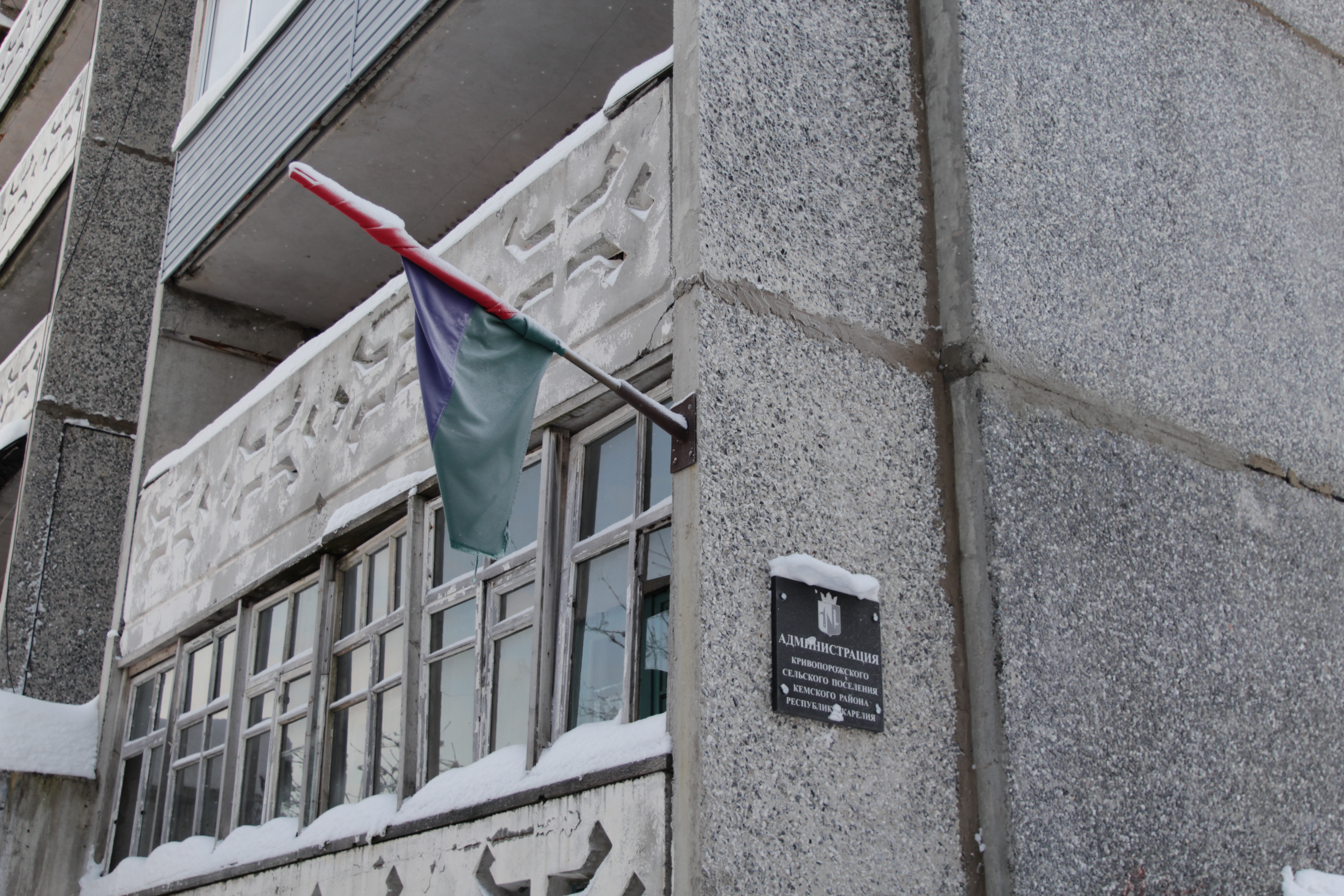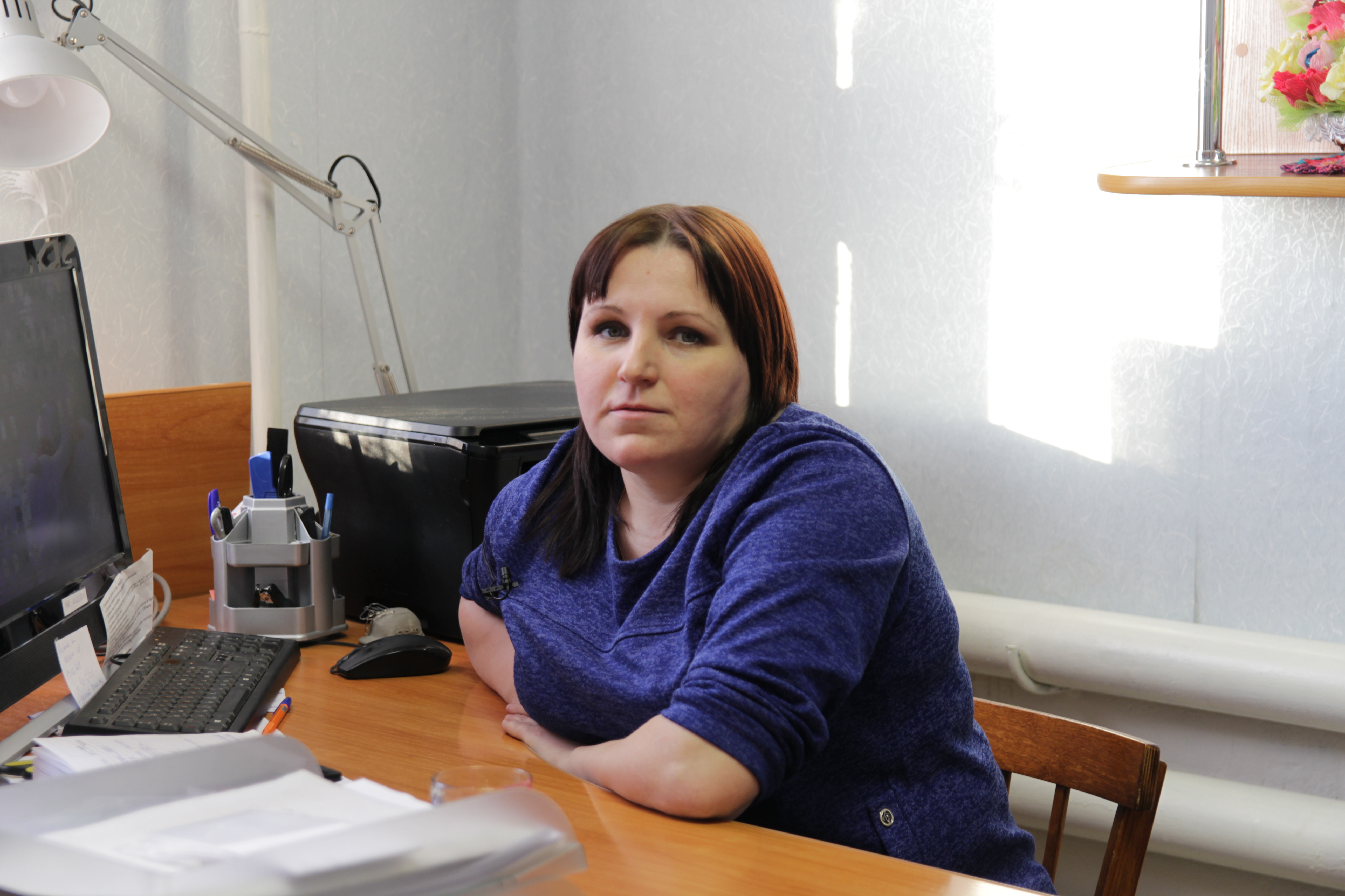 Глава поселения Евгения Семёнова на этой должности с сентября 2018 года. На пост главы пошла, потому что желающих не было, а другой работы в поселке нет. У нее в кабинете на полке стоят горшки с цветами, за горшками воткнут предвыборный плакат с ее портретом, рядом, за зелеными листьями – портрет Владимира Путина.
