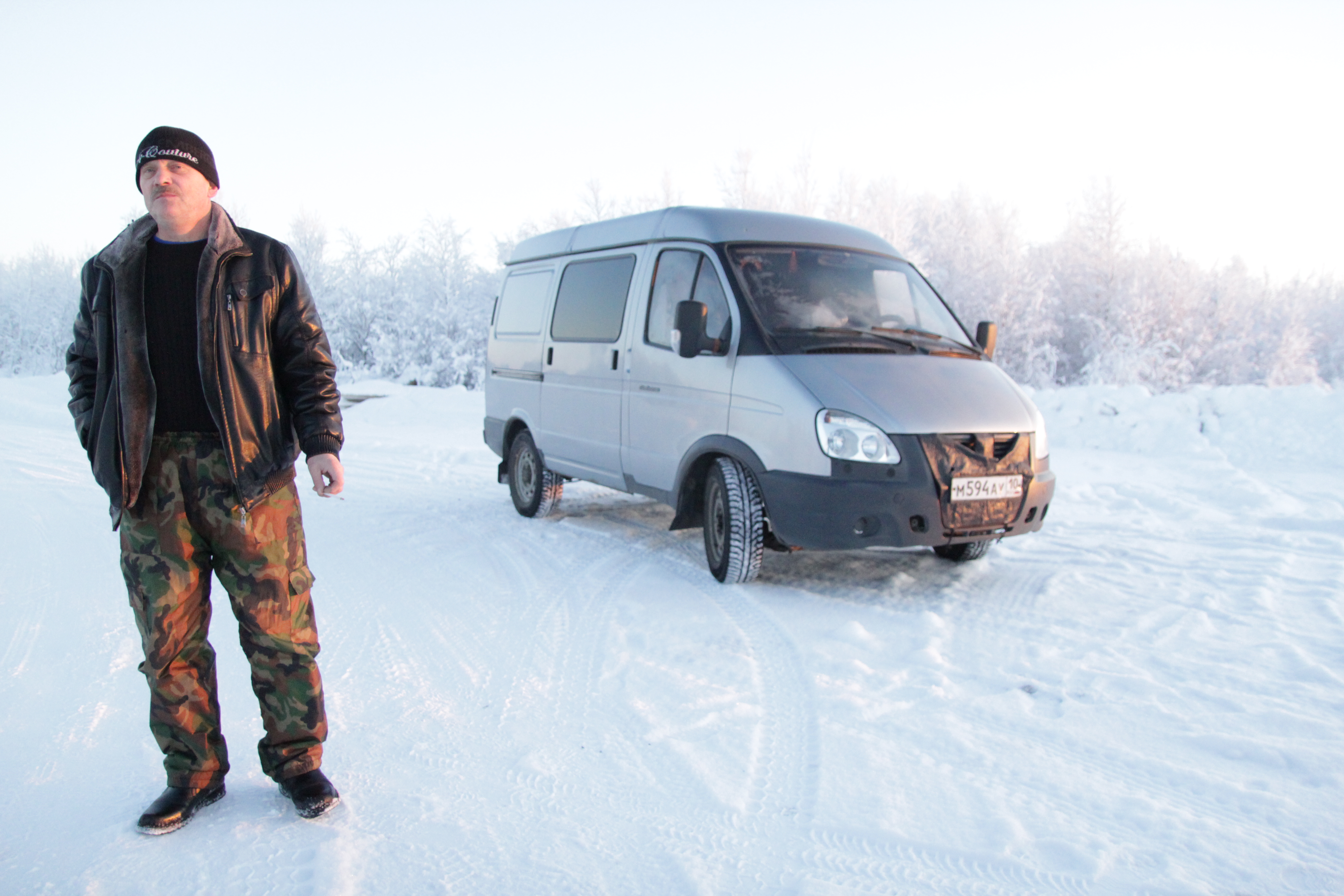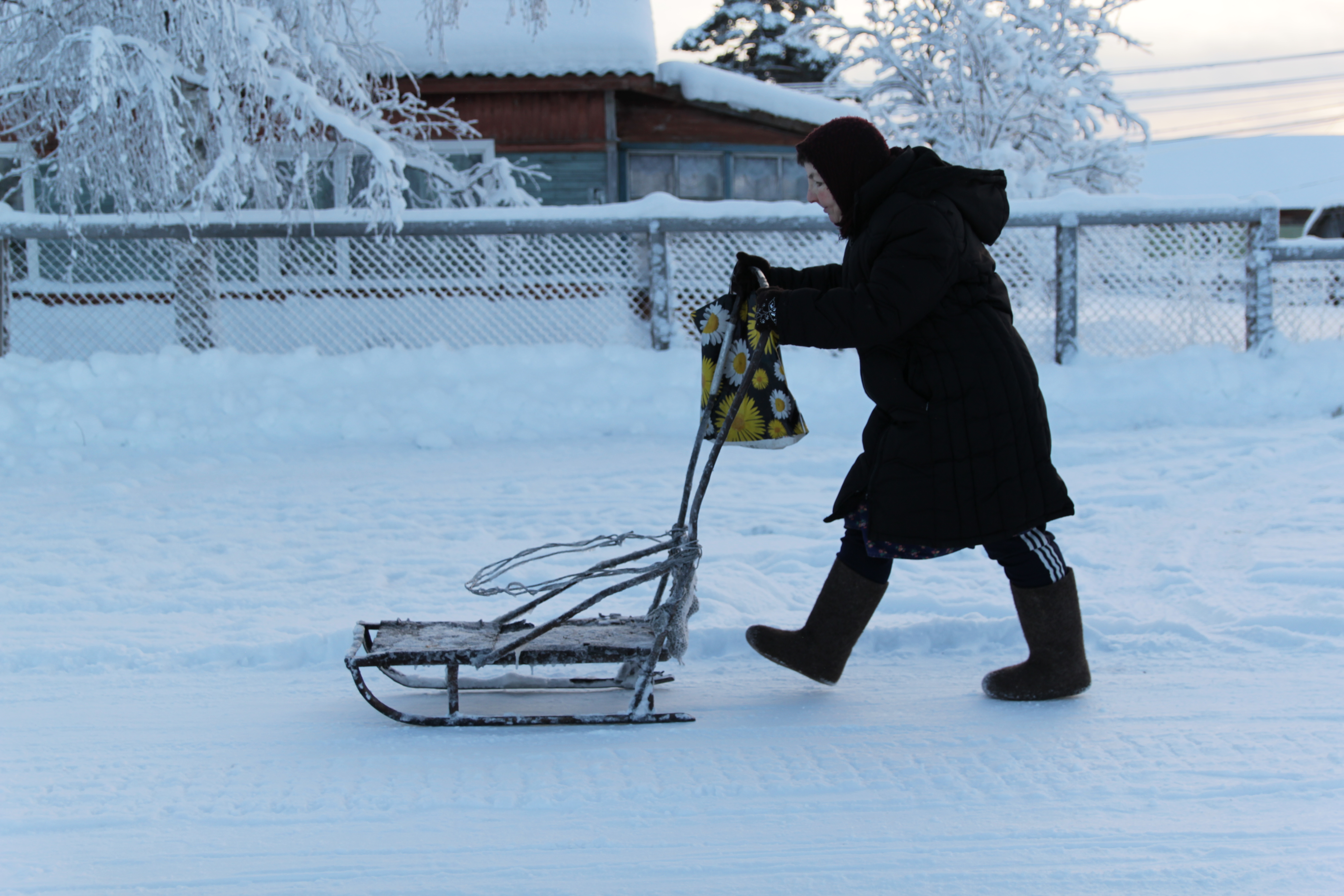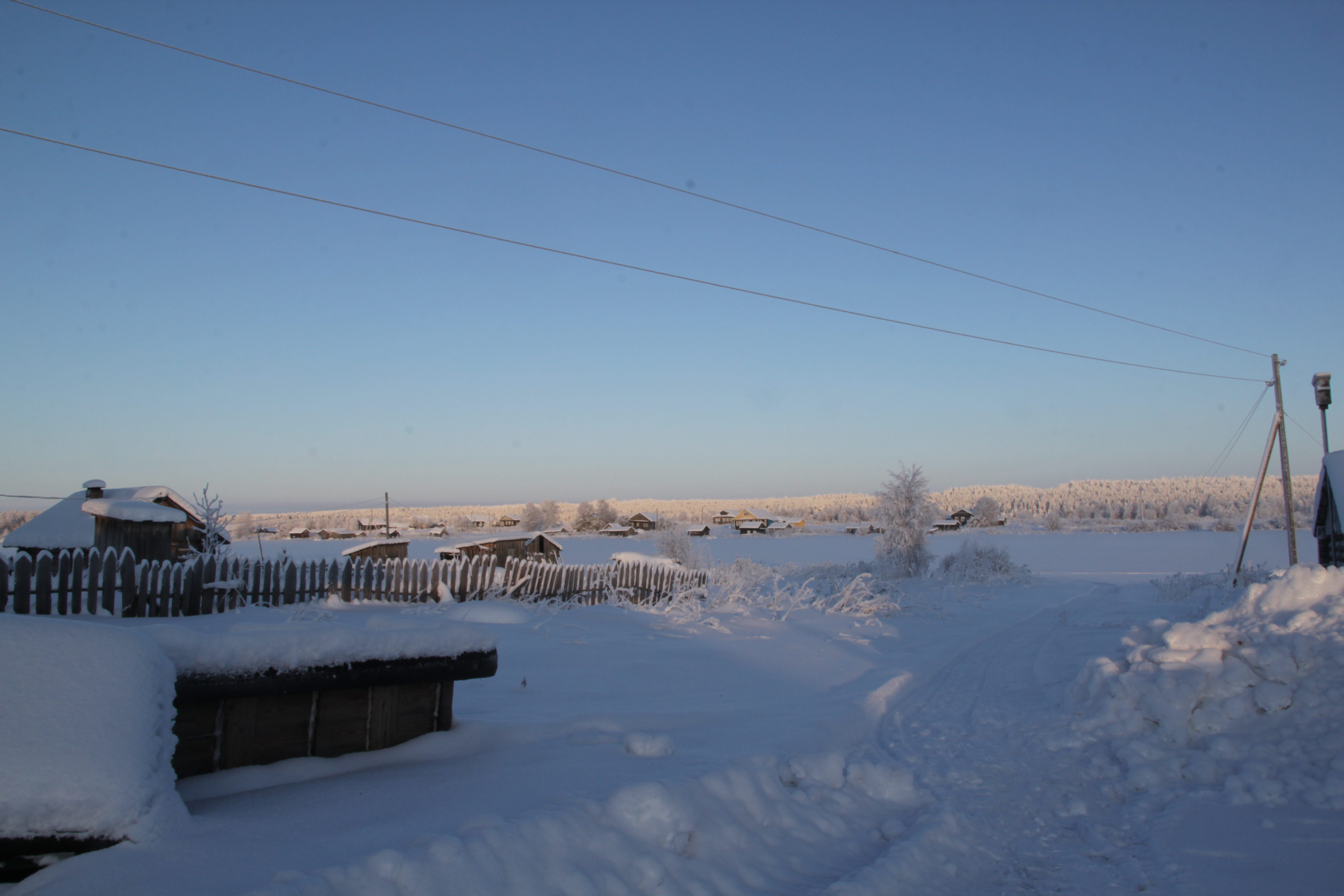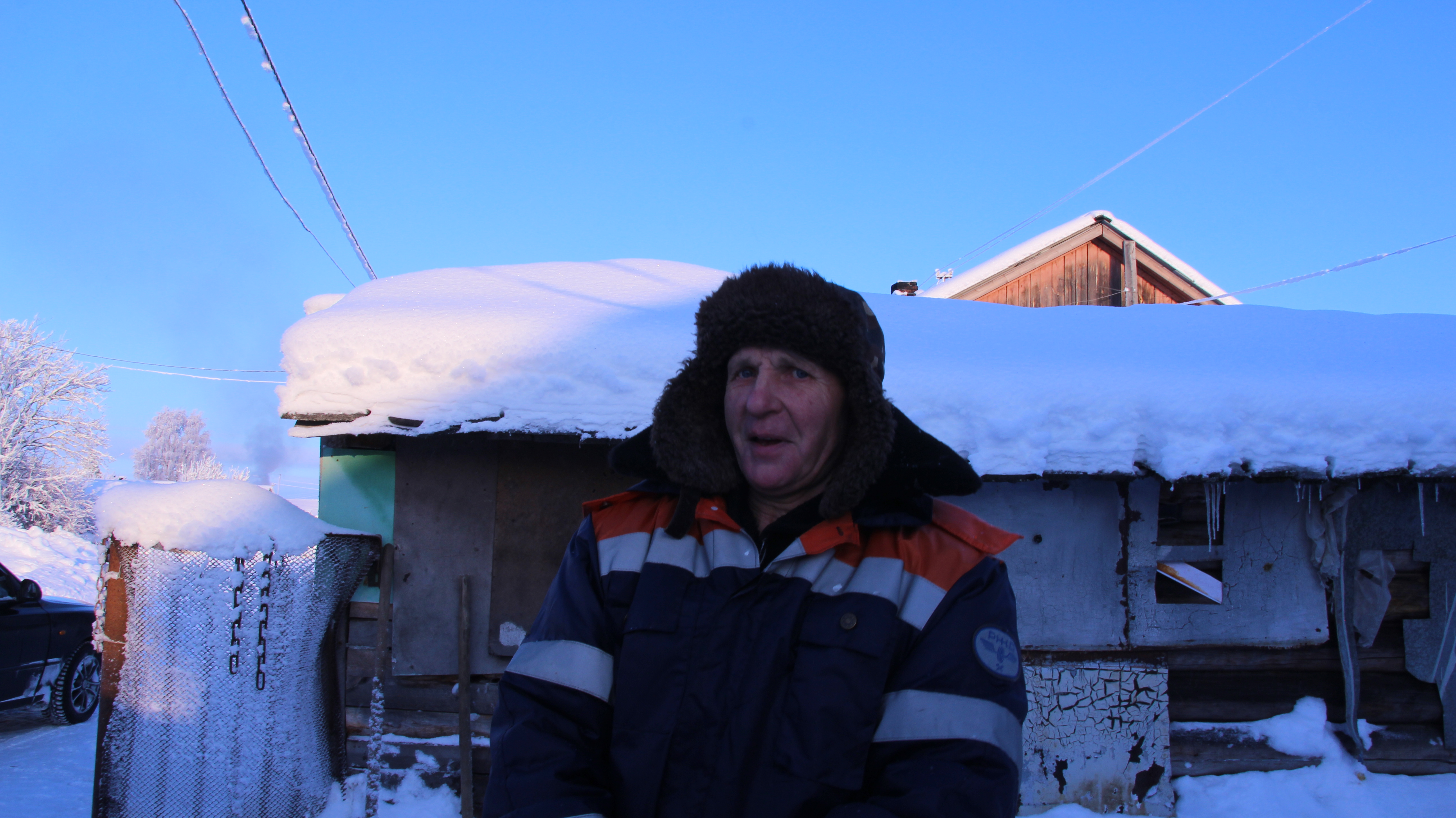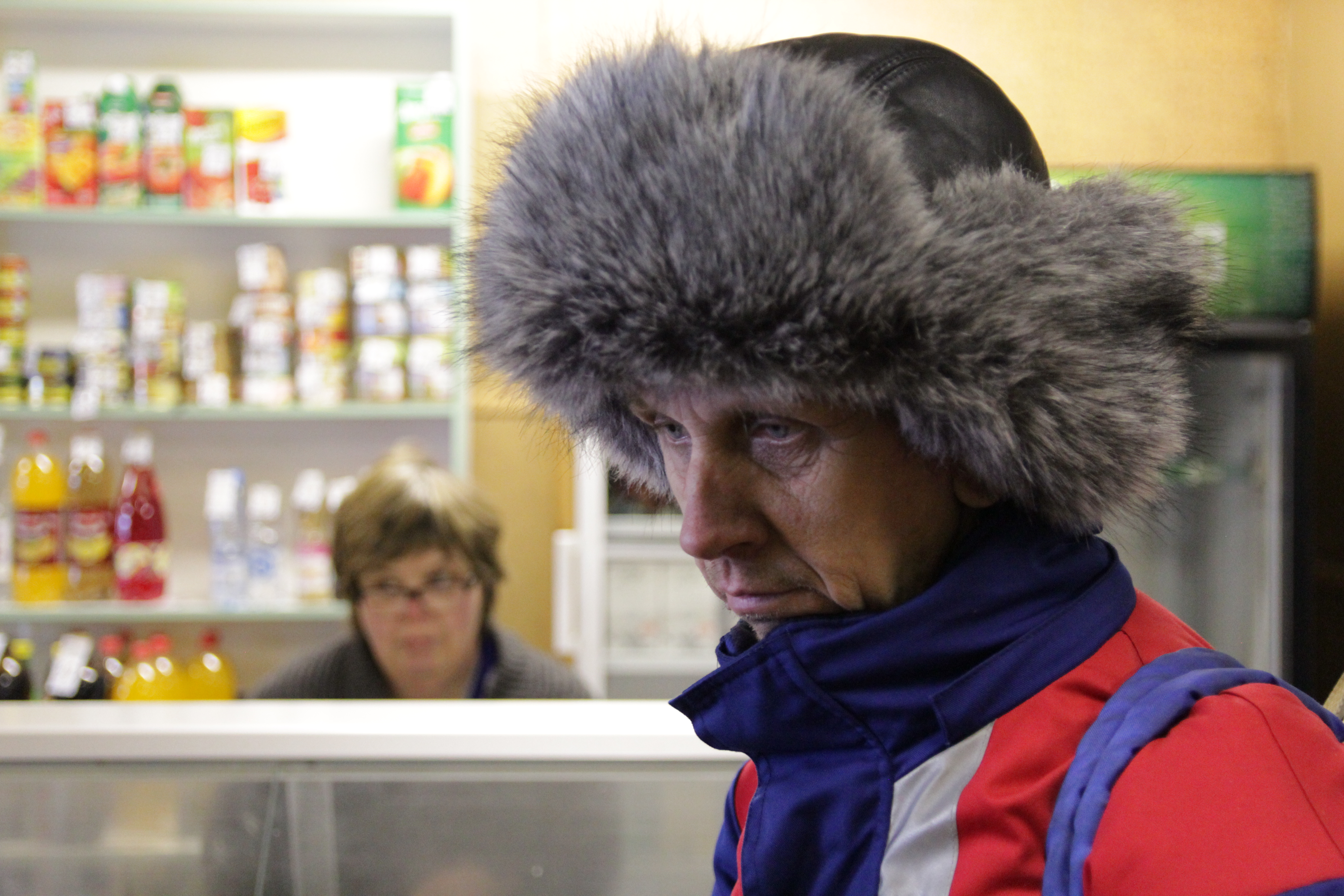 Андрея Григорьева в нелепой меховой шапке, с большим рюкзаком за плечами мы встретили, когда он шел за хлебом. Он устроился в местную котельную, в поселок ходит из деревни пешком.