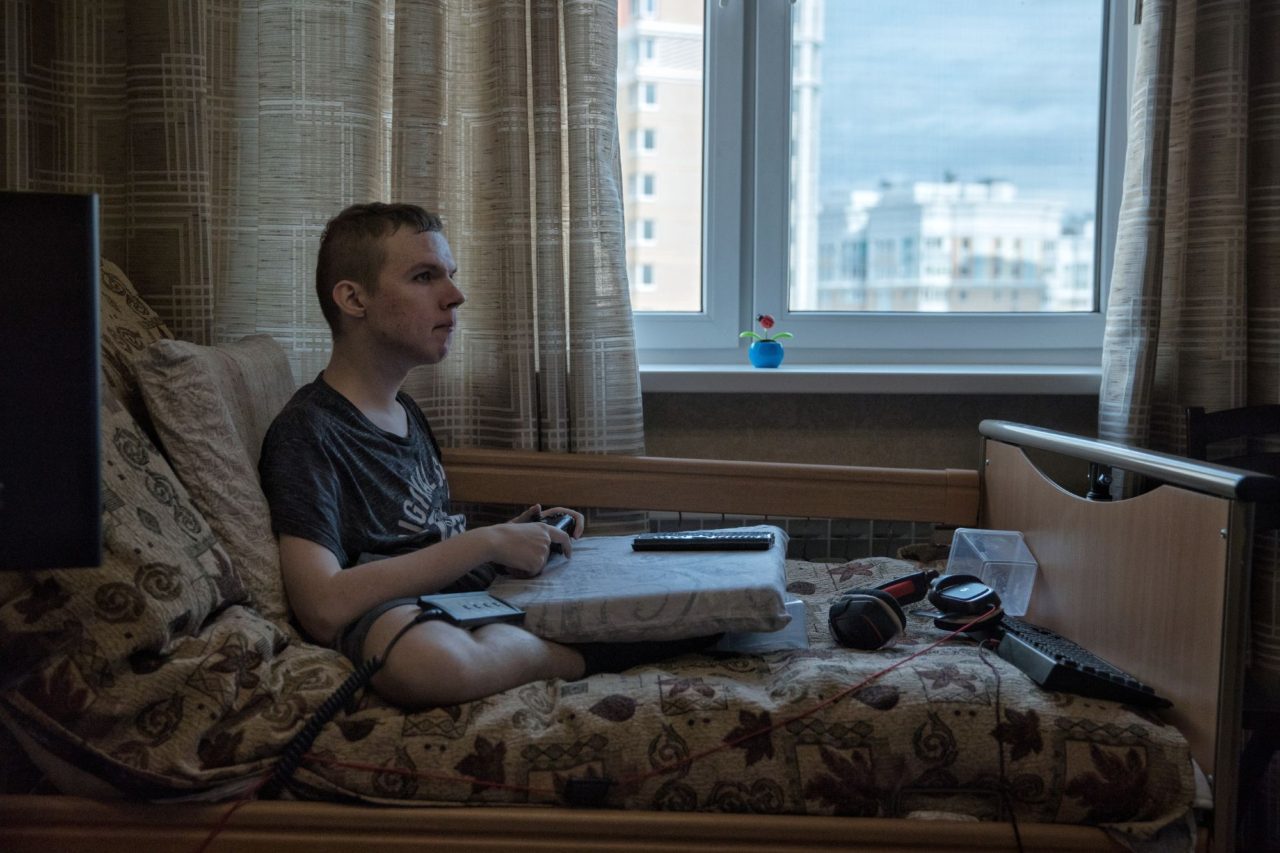 Уже пять лет Марина не спит. Четыре раза за ночь она просыпается, чтобы перевернуть Андрея на другой бок. Когда тело сына затекает, он зовет маму по радионяне. «Привыкла, — говорит Марина. — Уже встаю на автомате, даже глаза иногда не открываю».