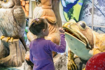 Просвещает центр, используя нестандартный игровой подход. Вместо традиционных экспонатов за стеклом — больше 50 интерактивных комплексов, с которыми можно и нужно взаимодействовать: трогать, собирать, нюхать, слушать. Теперь тайны устройства живых организмов — от строения клетки бактерии до сложных процессов фотосинтеза — стали максимально понятными. В центре можно: собрать скелет человека, измерить свой пульс и сравнить с сердцебиением слонов и колибри, потягаться силой с носорогом, покормить роботов белку, лягушку и сову, найти след рыси и лося и многое другое. Экспозиция центра состоит из разных уровней, что делает ее доступной для взрослых и малышей, а также для людей с особыми потребностями.