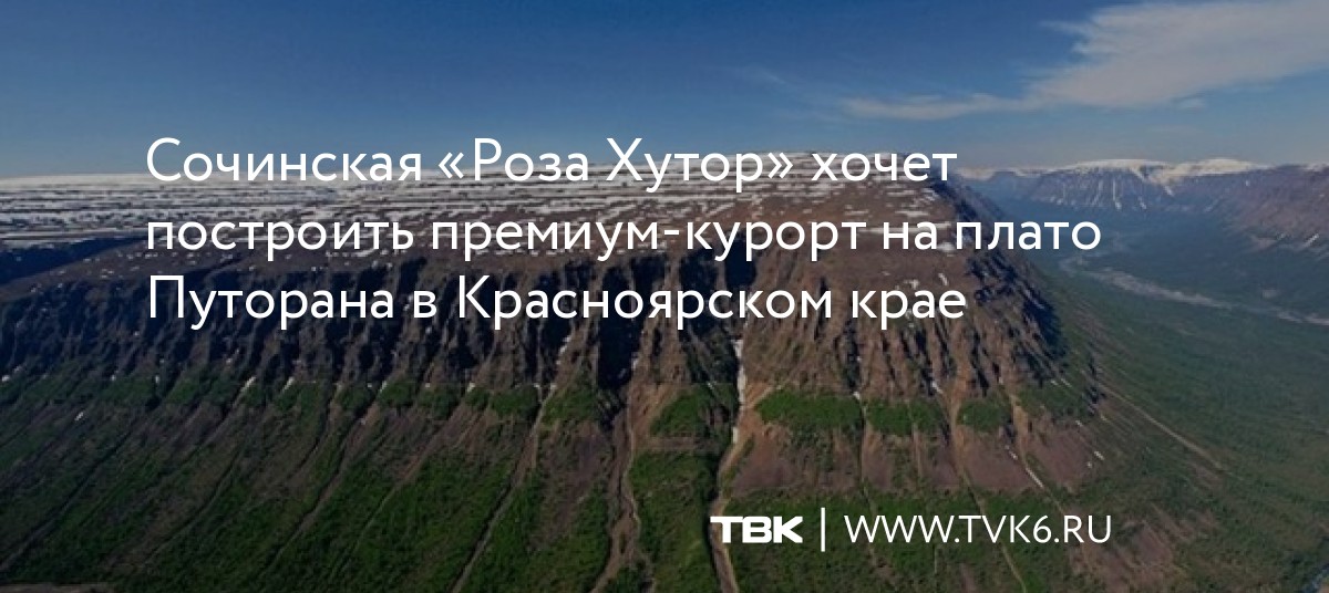 Представители сочинского курорта «Роза Хутор» в середине августа побывали на территории плато Путорана. Компания намерена создать в Красноярском крае курорты премиум-класса. Были выбраны территории для благоустройства и возведения туристической инфраструктуры у отдаленных озер на плато, и среди мест уже сейчас популярных у туристов.