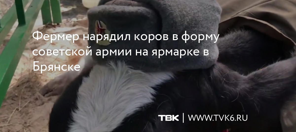 Коров на ярмарке в Брянске нарядили в форму солдата Советской армии. Видео опубликовал на YouTube местный бизнесмен Александр Коломейцев. Он показал корову, одетую в форму солдата Советской армии. Рядом в загоне была еще одна буренка, с рыжим париком и в пилотке.