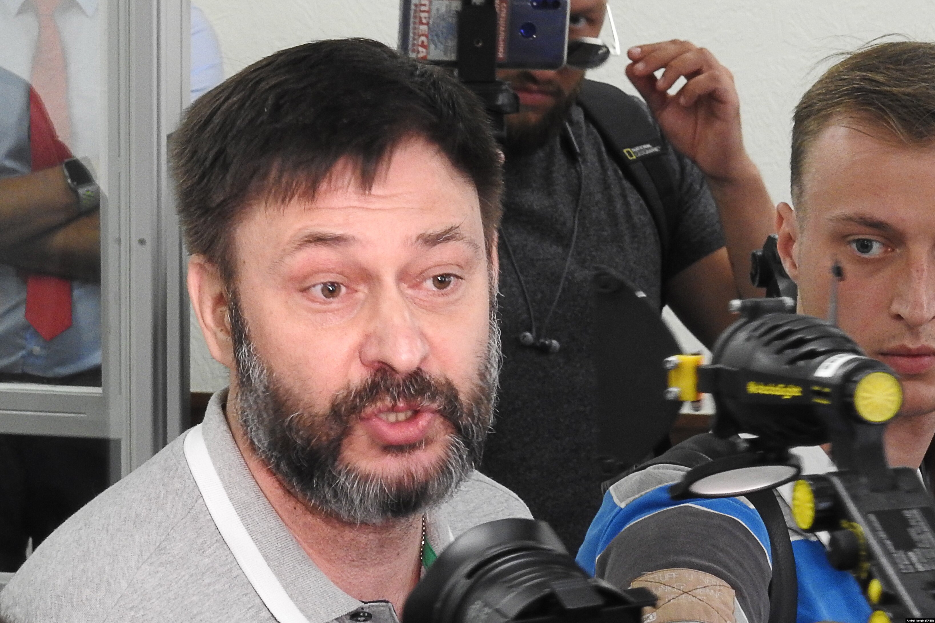 Главный редактор «РИА Новости-Украина» Кирилл Вышинский был задержан 15 мая 2018 года по подозрению в государственной измене (ст. 111 Уголовного кодекса). Через два дня он был арестован и с тех пор находится в СИЗО.