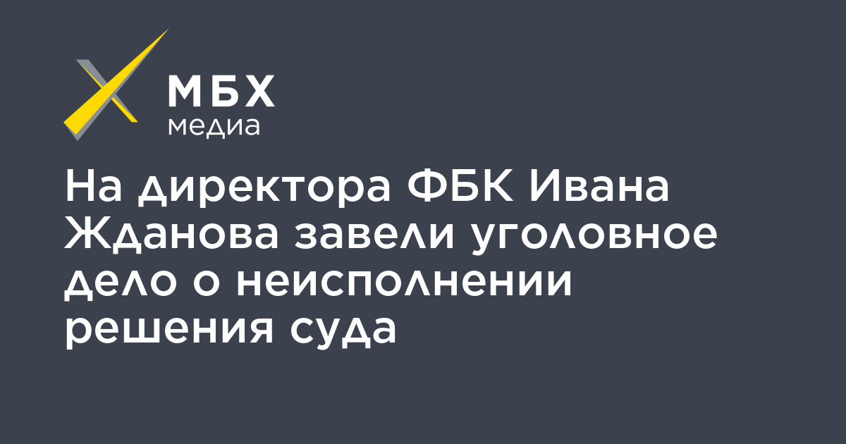 На директора Фонда борьбы с коррупцией (ФБК) Ивана Жданова завели уголовное дело о злостном неисполнении решения суда (часть 2 статьи 315 УК). Об этом сообщил «МБХ медиа» адвокат Владимир Воронин.
