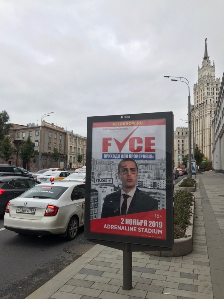 Оператор наружной рекламы Russ Outdoor снял баннеры с афишей московского концерта рэпера Face после того, как музыкант поучаствовал в акции протеста на проспекте Сахарова. Об этом сообщает «Русская служба Би-би-си». Помимо этого, отменились два концерта рэпера в Улан-Удэ и Иркутске.