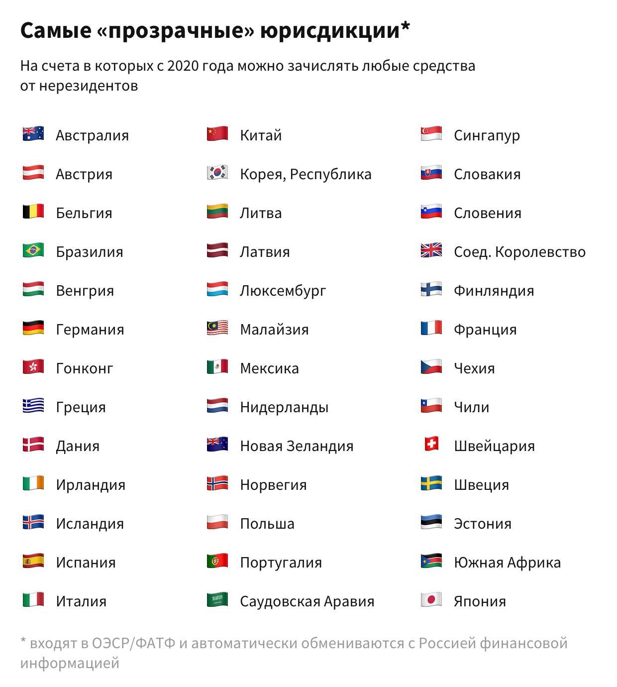 UPD. от 7 января 2020 года. Эта статья была опубликована в августе 2019 года. С тех пор в валютном законодательстве произошли важные изменения: с 2020 года совершать любые валютные операции можно по счетам, открытым в странах ЕврАзЭс или в странах, которые обмениваются финансовой информацией с Россией в автоматическом режиме (соответствующий закон был принят 27 декабря 2019 года). В списке этих стран (последнюю его версию Минюст зарегистрировал 24 декабря 2019 года) есть Кипр, Мальта, Британские Виргинские Острова и другие популярные у россиян офшорные юрисдикции, зато нет Великобритании. В предыдущей версии нововведений предполагалось, что без ограничений с начала 2020 года можно будет проводить операции по счетам в странах ОЭСР или ФАТФ, которые обмениваются информацией с Россией.
