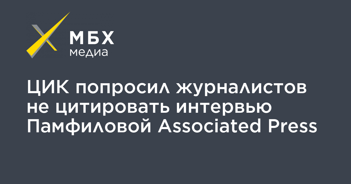 ЦИК попросил журналистов не цитировать интервью главы комиссии Эллы Памфиловой агентству Associated Press. Соответствующее заявление выпустила пресс-служба ЦИКа, сообщил Василий Вайсенберг.