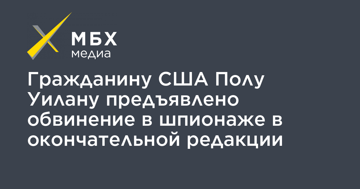 Гражданину США Полу Уилану предъявлено обвинение в шпионаже в окончательной редакции