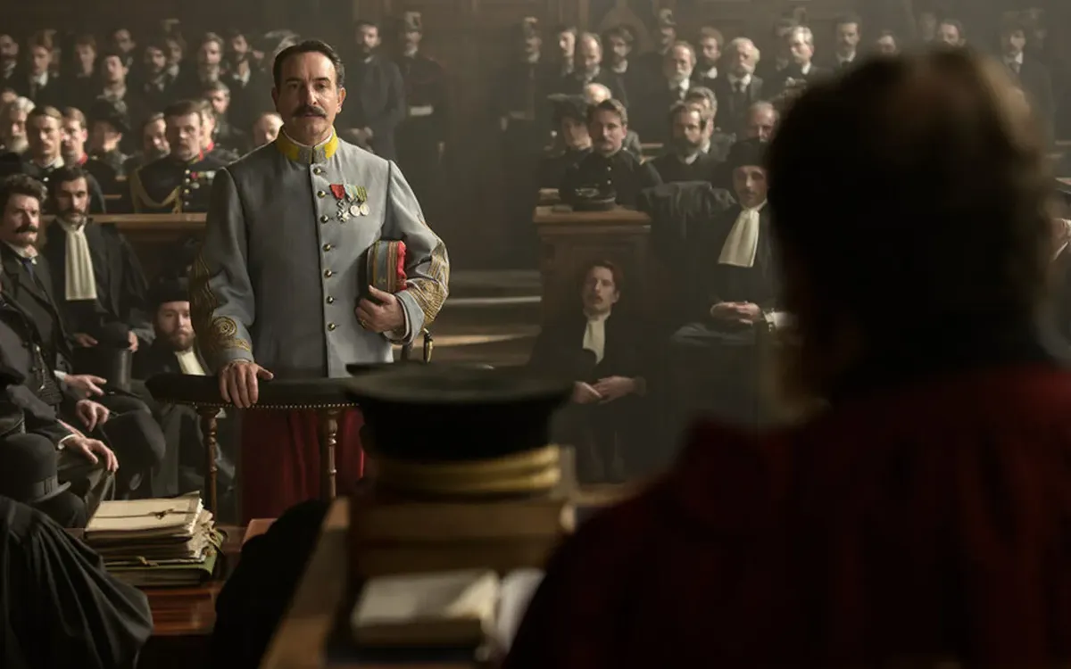 На плацу с выстроенными по периметру, словно игрушечными, солдатиками и офицерами — капитан Альфред Дрейфус (Луи Гаррель) с позором лишен звания. С него срывают эполеты, ломают шпагу. Он унижен за шпионаж в пользу Германии и приговорен к пожизненному заключению на острове Дьявола. Это январь 1895-го. Дальше разматывается весь клубок событий.