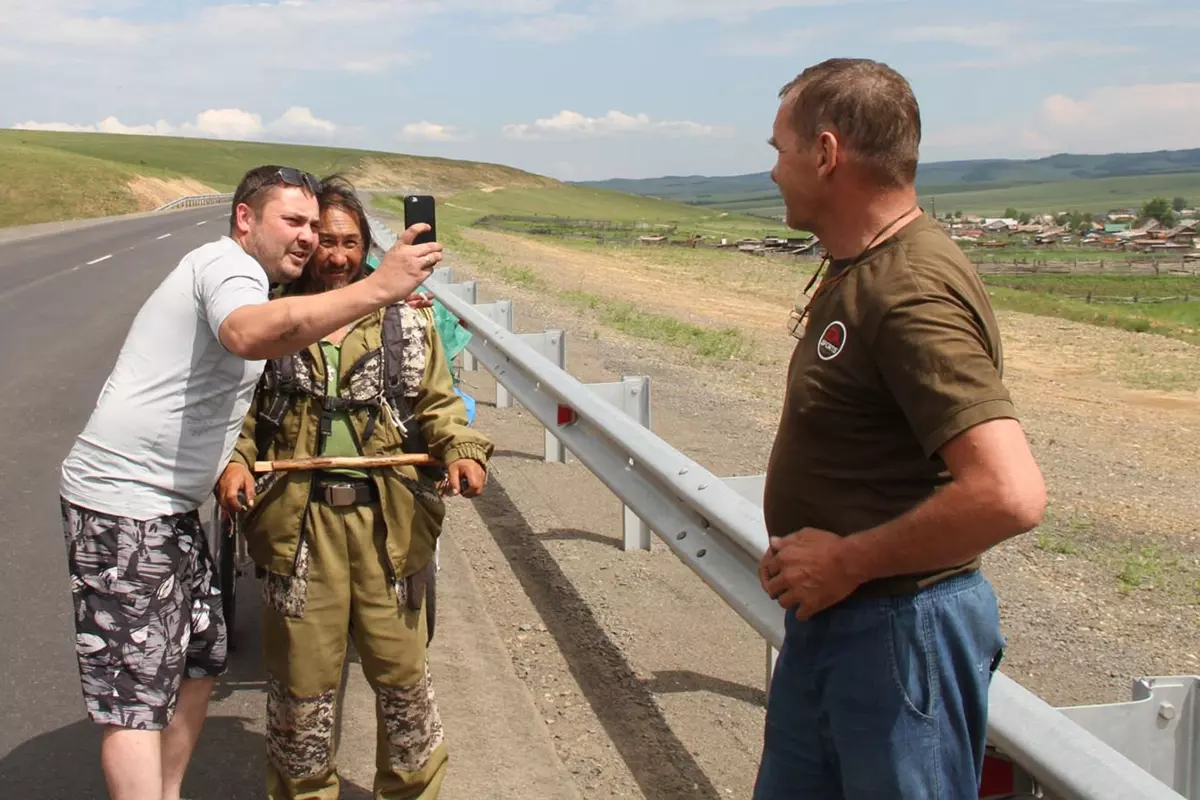 — На то, чтобы специально заходить в населенные пункты небольшие, очень много времени нужно. В основном местные жители приезжают тогда, когда мы останавливаемся на привал. Приезжают на машинах, сигналят. Семьями приезжают, даже свадьбу справляли! Общаемся, разговариваем, обсуждаем. В крупных населенных пунктах останавливаемся, где скопление людей, и общаемся. Очень много людей ждут. Быстро разлетается новость, что шаман идет. Народ простой встречает с радостью. С хлебом, с солью.