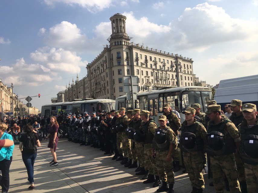 Полиция полностью оцепила Пушкинскую площадь с протестующими