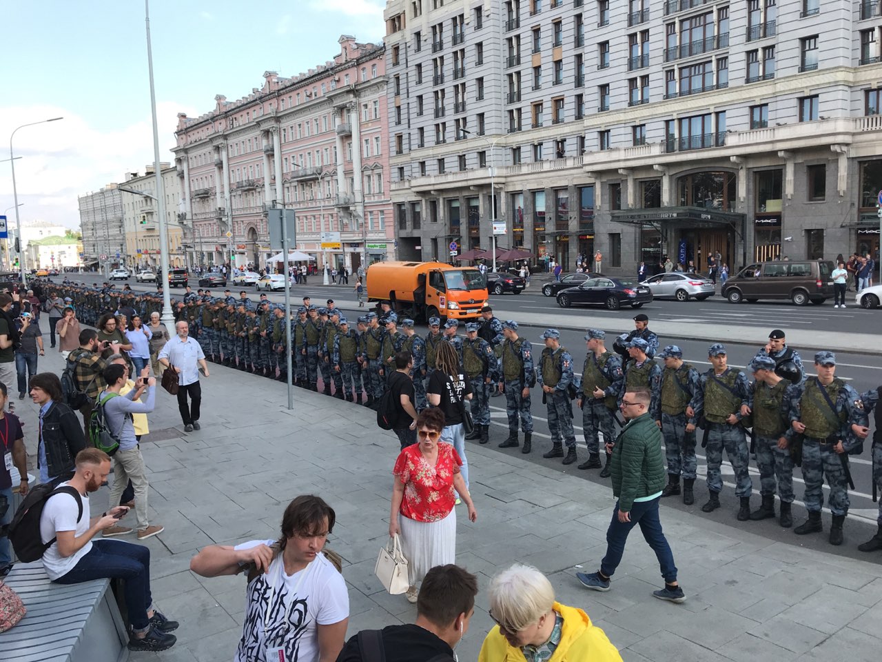 Мы начинаем нашу трансляцию. Ни одна из заявленных в центре Москвы акций пока не началась, но корреспонденты «МБХ медиа» уже сообщают о повышенном количестве сотрудников Росгвардии в районе проспекта Сахарова и близлежащих дворов. Также есть сообщения о непривычно большом количестве «рабочих» в центре.