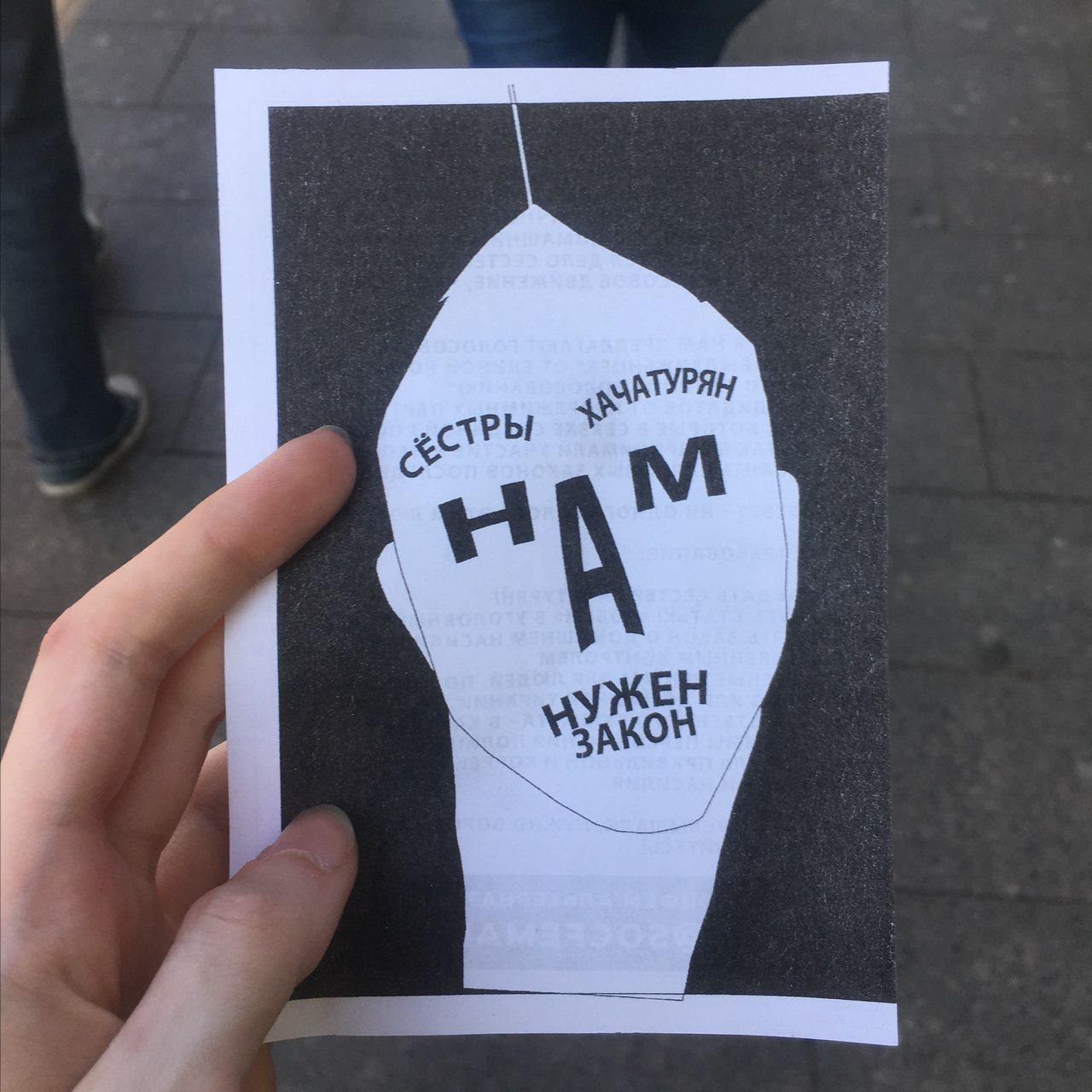 Участницы движения «СоцФем Альтернатива», которые вышли на шествие у Чистых прудов с баннером в поддержку сестер Хачатурян, рассказали «МБХ медиа», что никто из их активисток при нападении НОДовца не пострадал.