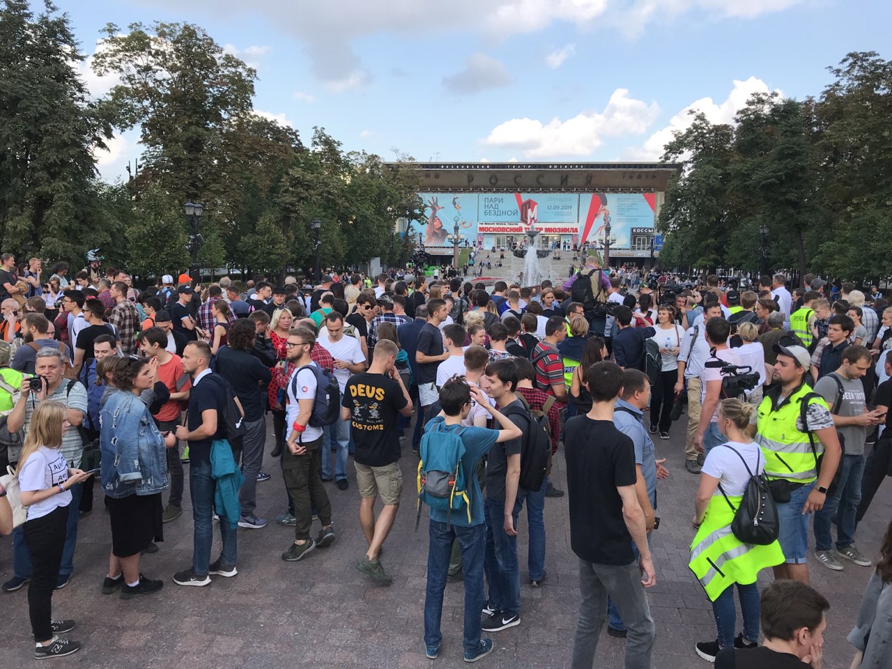 Основная часть протестующих разбрелась по бульварам, несколько сотен человек, среди которых, в основном, молодые люди, дошли до Хохловской площади – «Ямы». Оттуда двинулись в сторону Кремля. Кто-то кричит: «Один за всех, и все – за одного!»