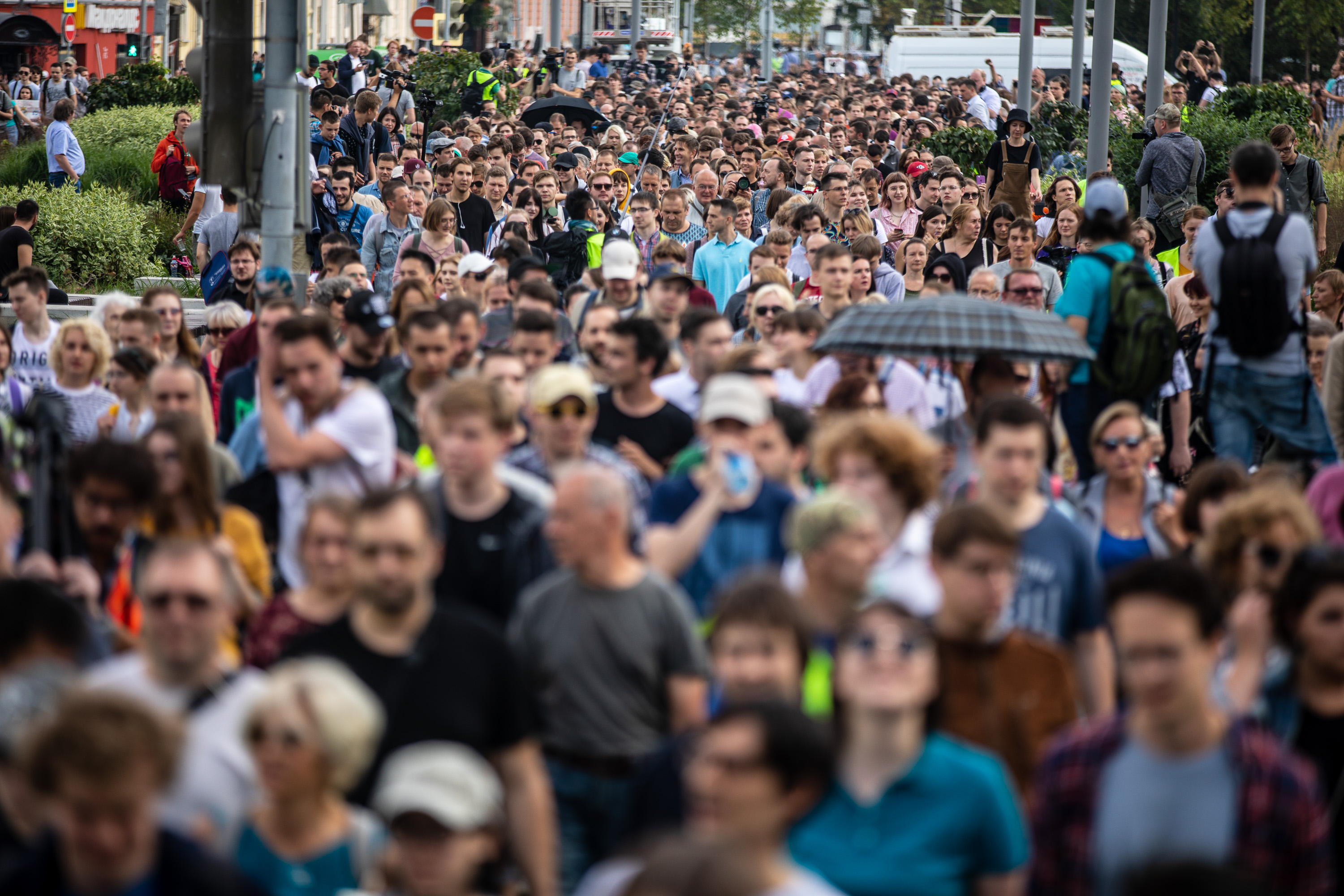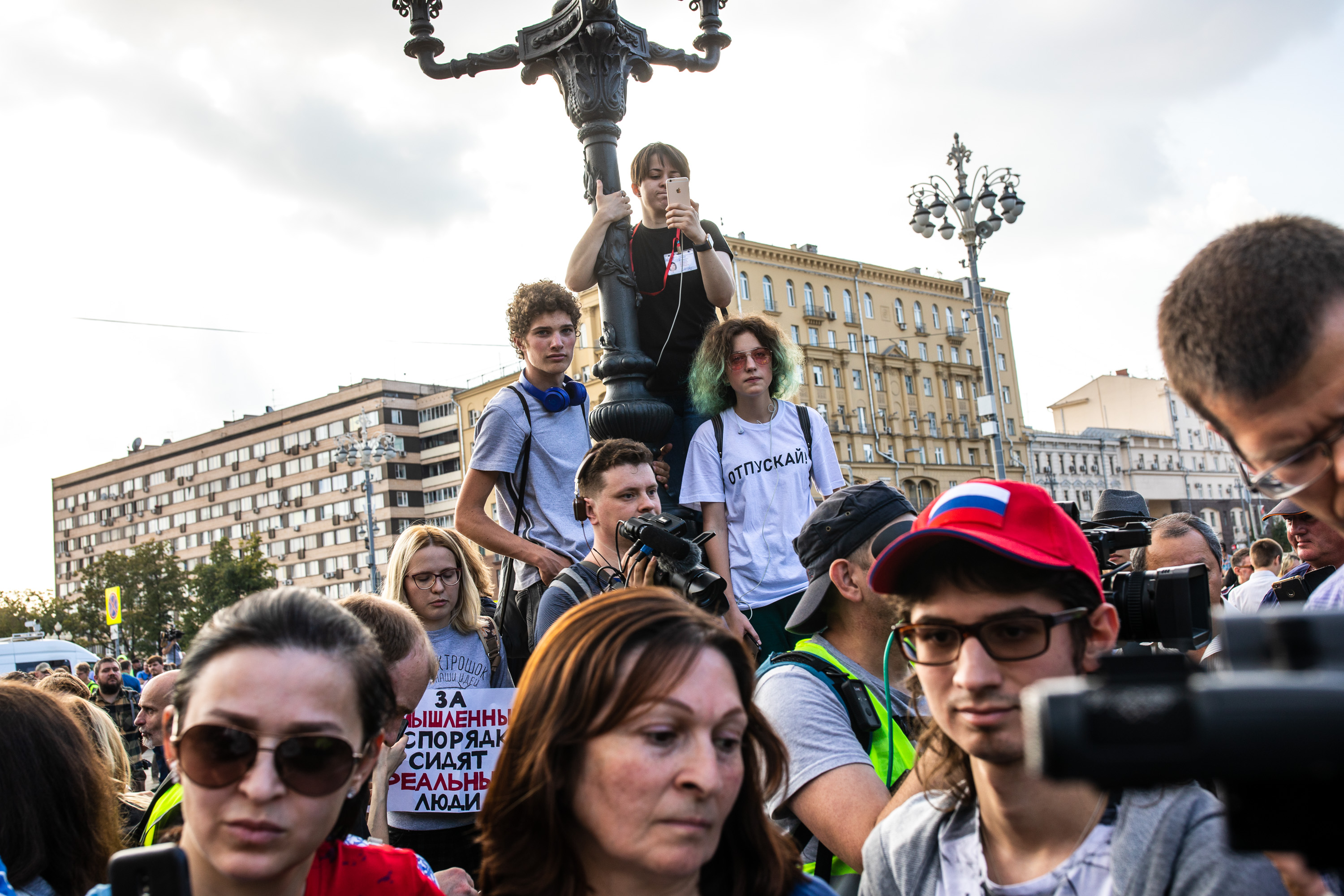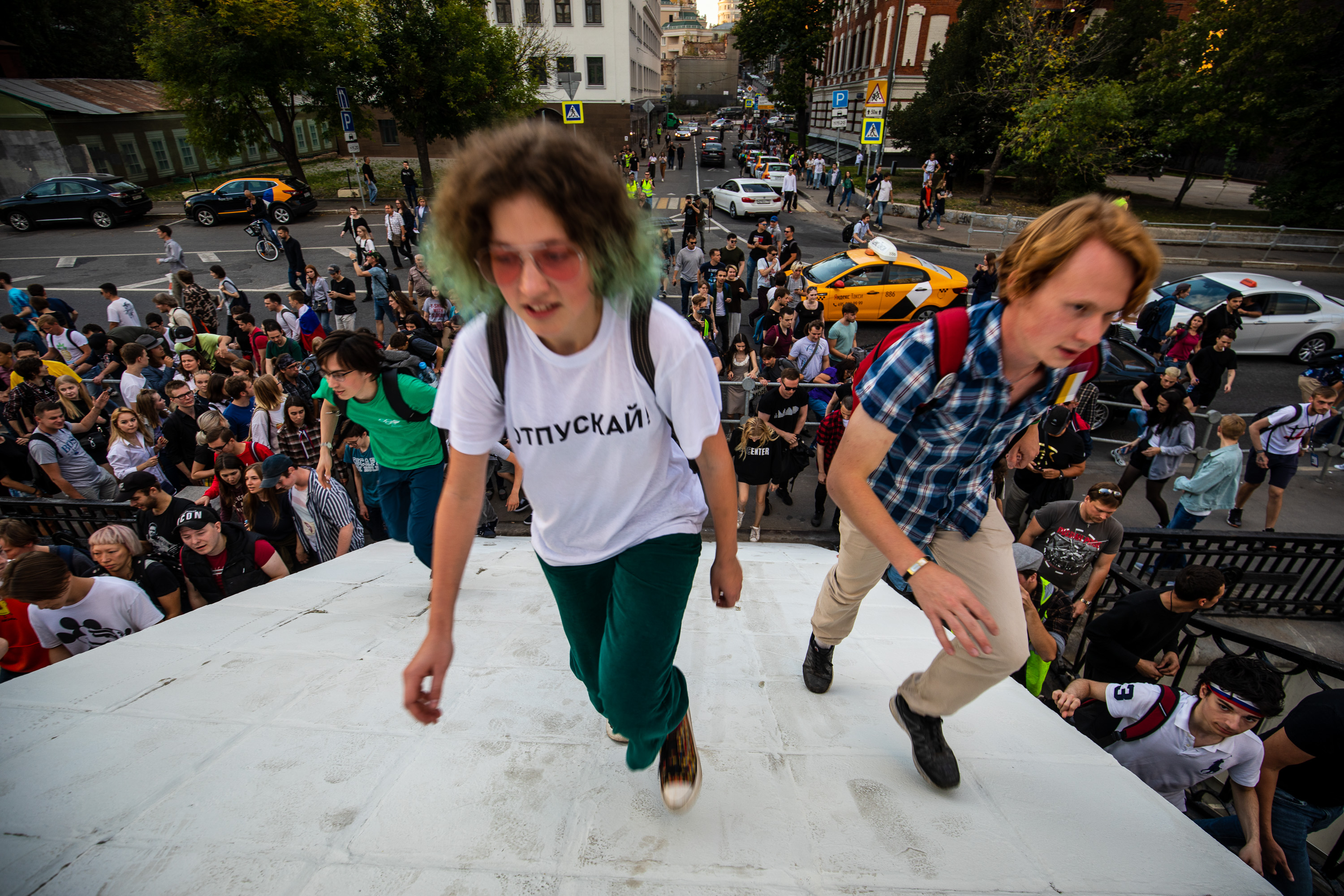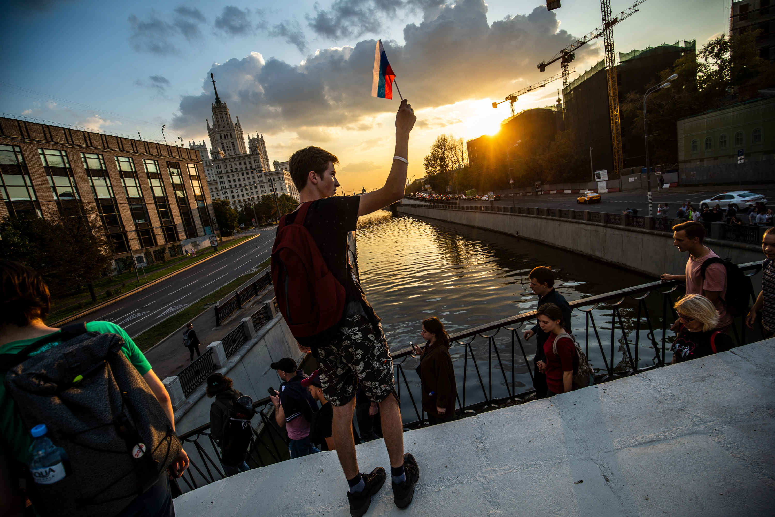 В центре Москвы прошло шествие, которое организовала продюсер «Навальный LIVE» Любовь Соболь. Марш назвали «Против политических репрессий»: оппозиционеры потребовали допуска независимых кандидатов в Мосгордуму и освобождения арестованных участников протестных акций. Хотя шествие не согласовали московские власти, полиция никого не задержала. «Медиазона» публикует фотографии Давида Френкеля, который прошелся с протестующими по московским бульварам, а потом наблюдал, как они продолжают несколько часов ходить по городу.