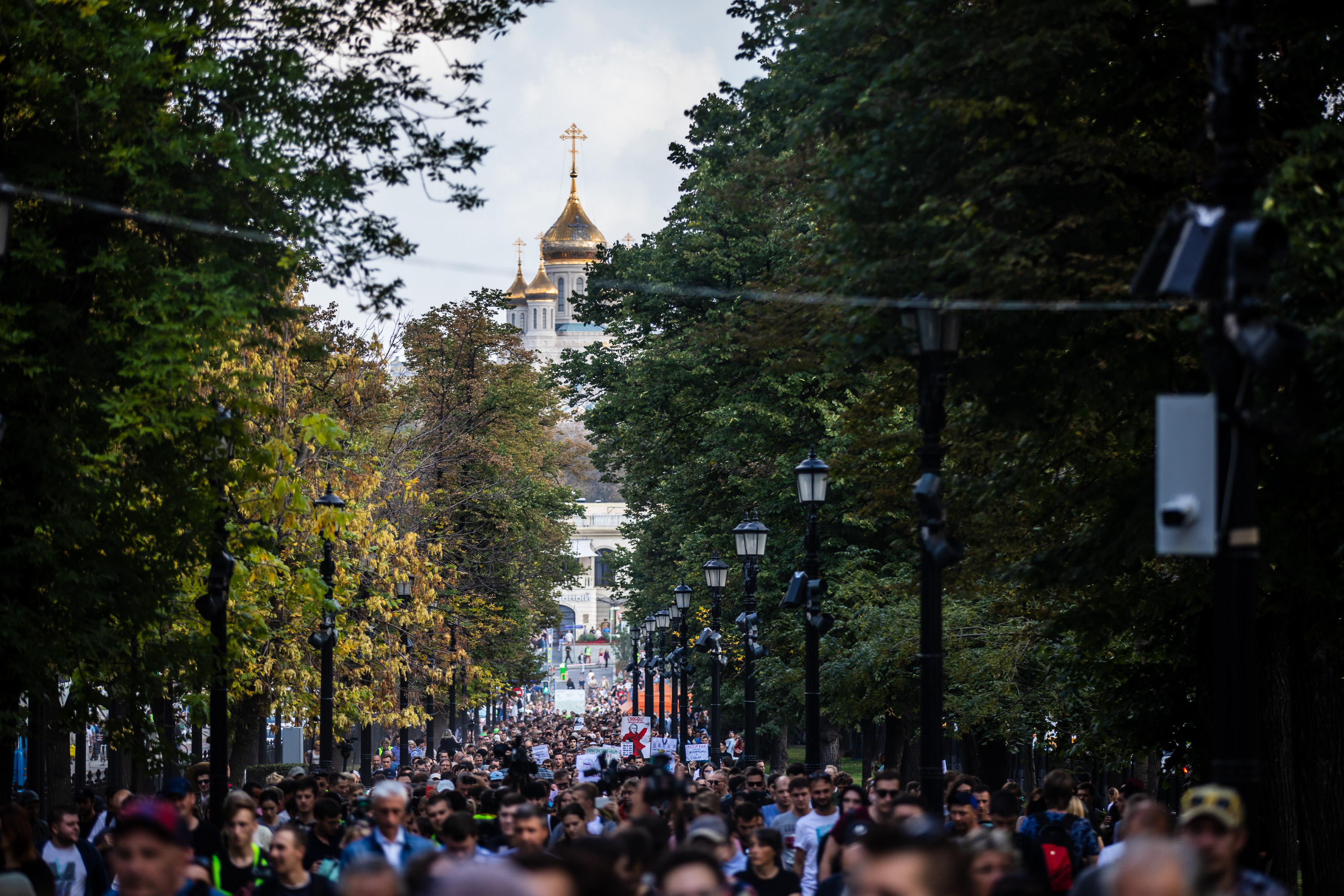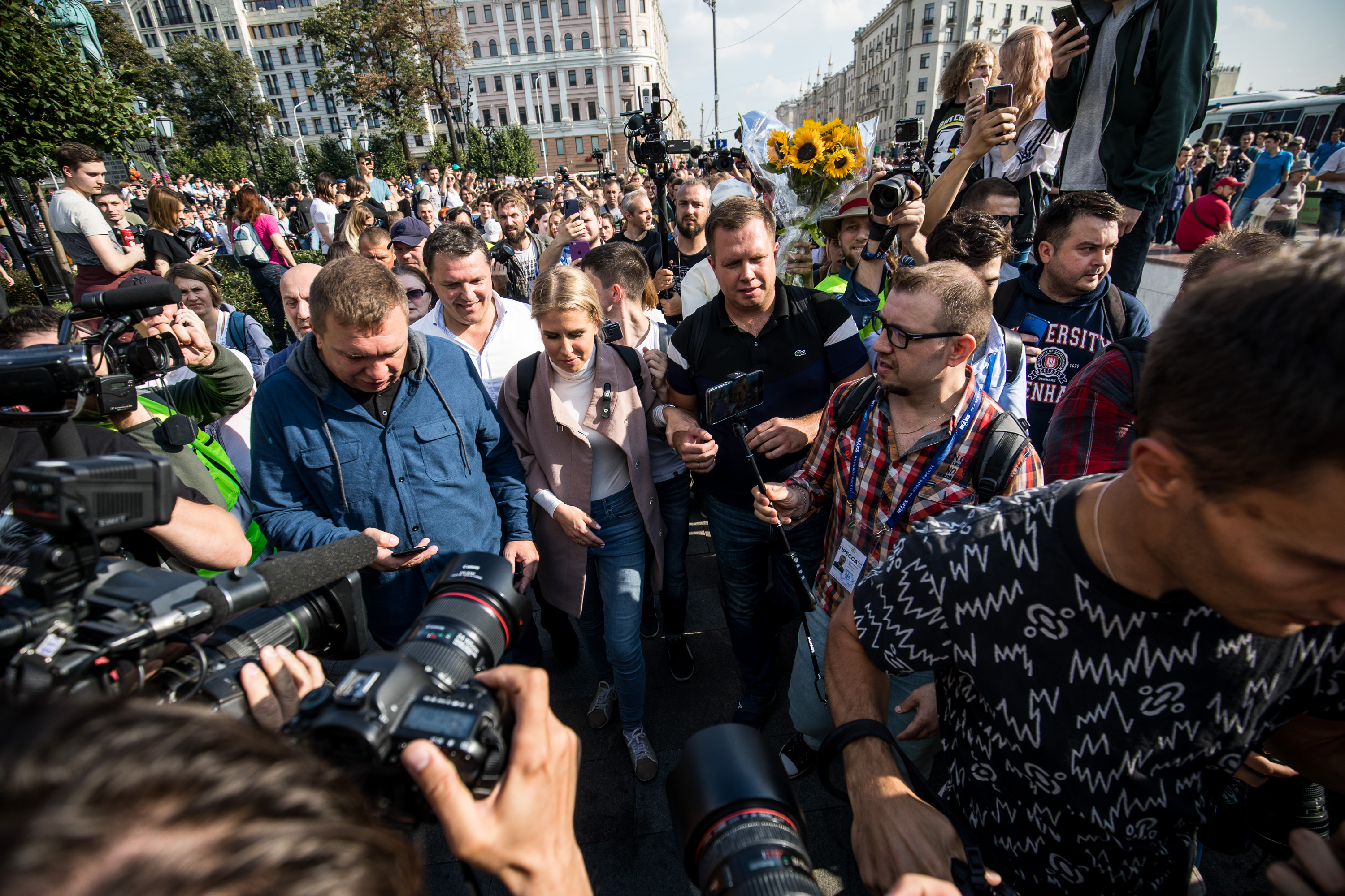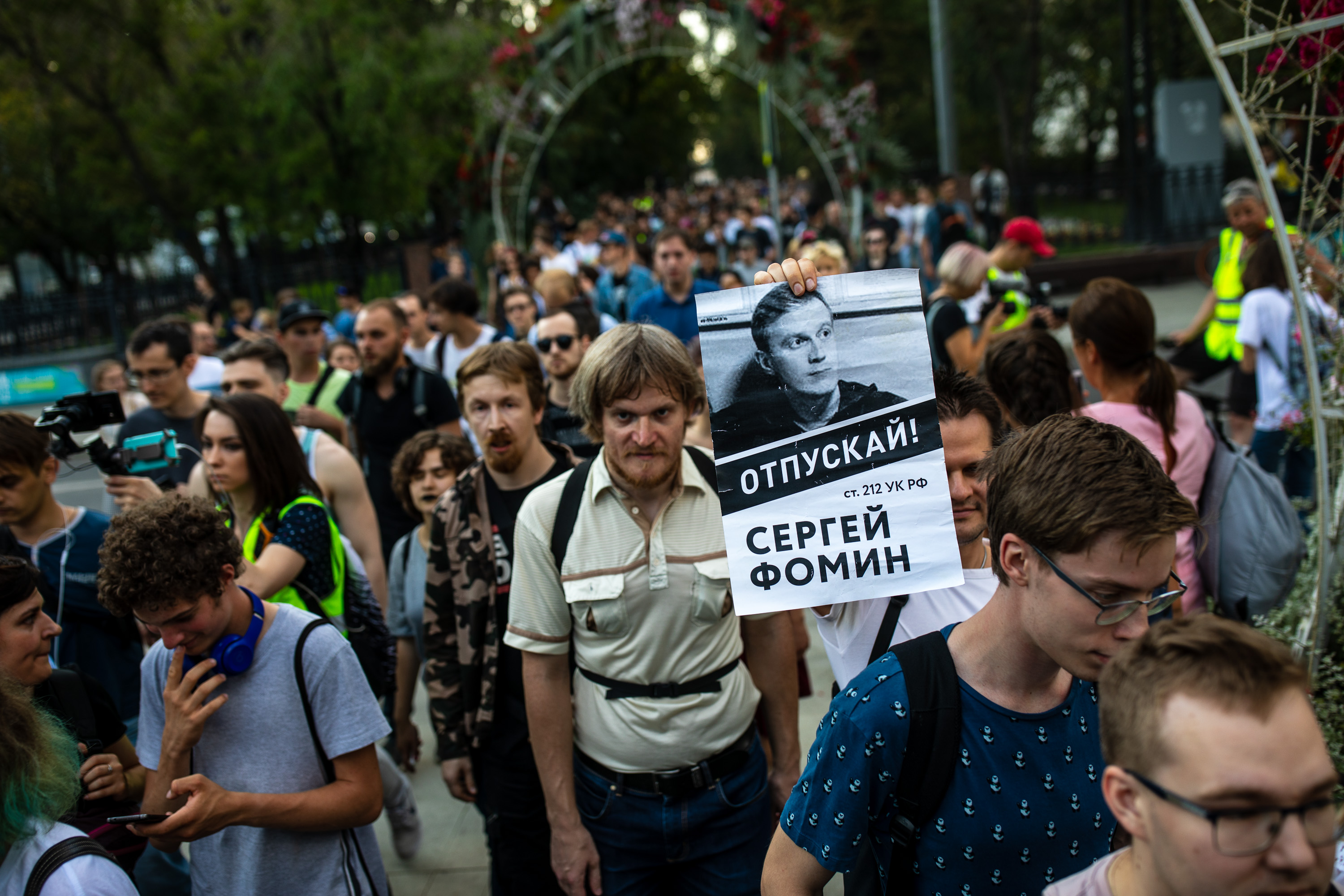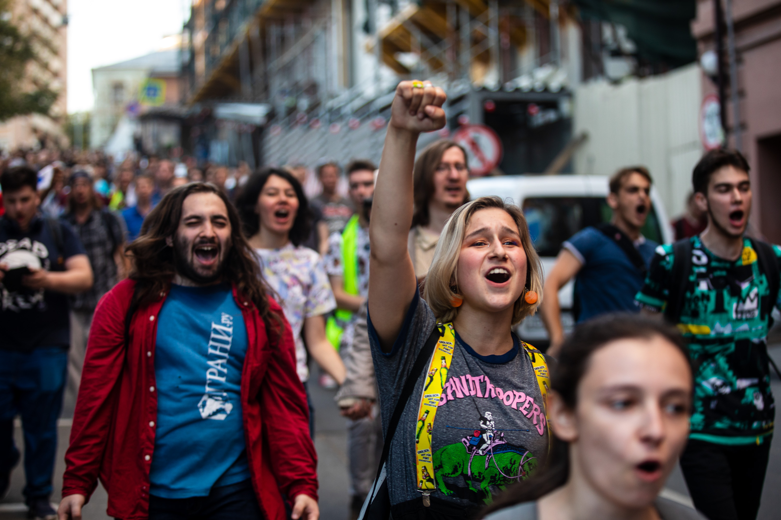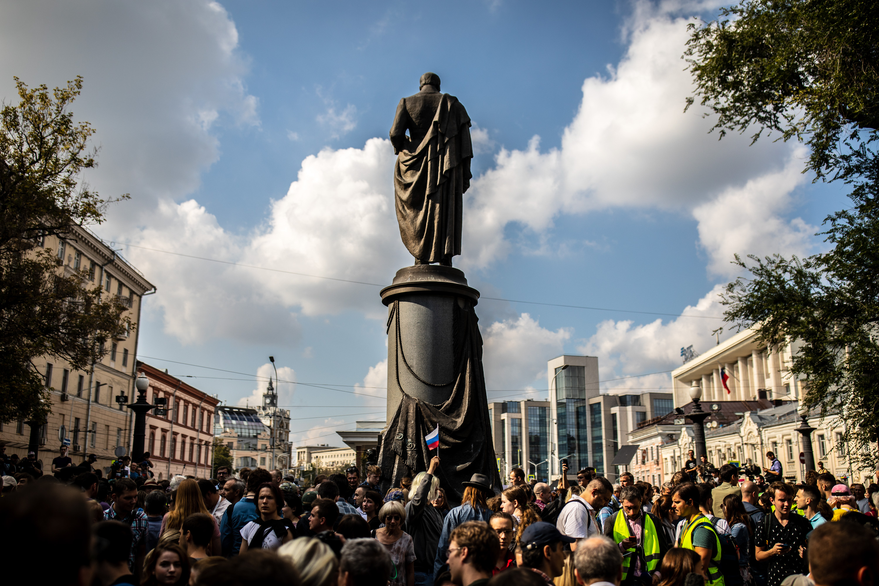 В центре Москвы прошло шествие, которое организовала продюсер «Навальный LIVE» Любовь Соболь. Марш назвали «Против политических репрессий»: оппозиционеры потребовали допуска независимых кандидатов в Мосгордуму и освобождения арестованных участников протестных акций. Хотя шествие не согласовали московские власти, полиция никого не задержала. «Медиазона» публикует фотографии Давида Френкеля, который прошелся с протестующими по московским бульварам, а потом наблюдал, как они продолжают несколько часов ходить по городу.