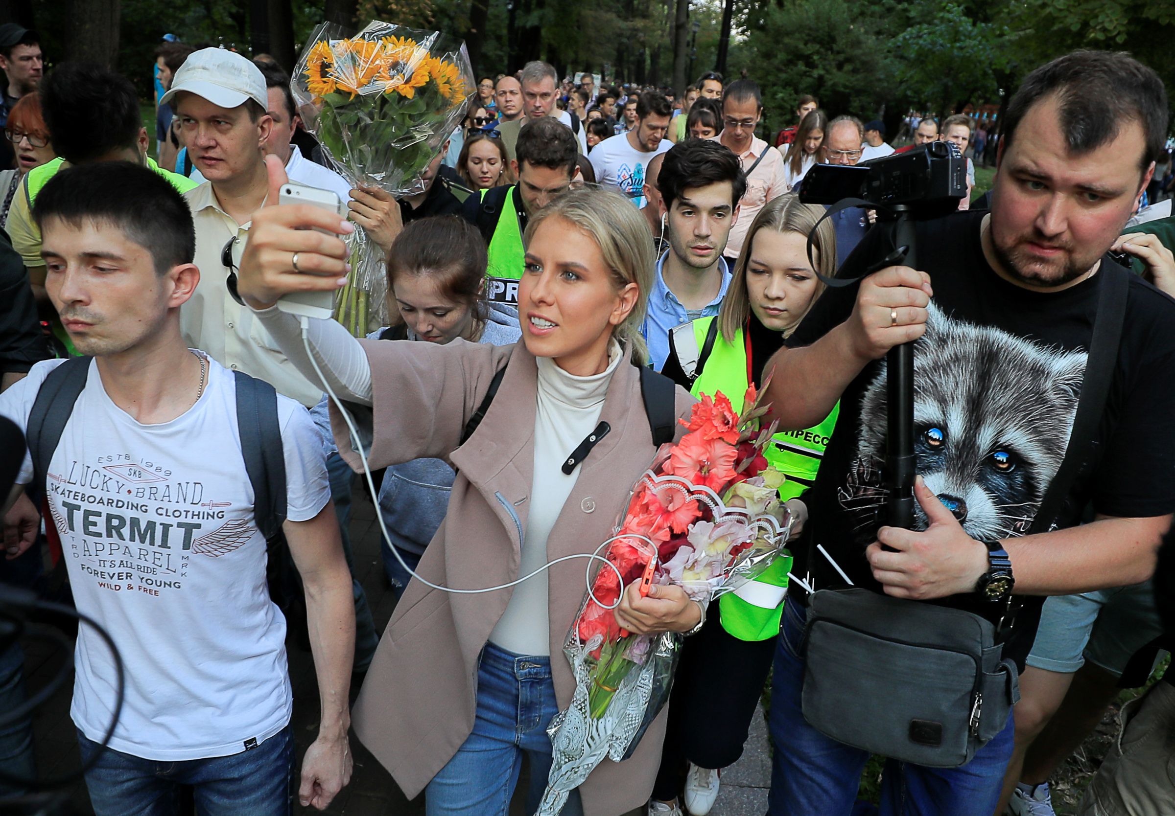 В акции приняла участие и Любовь Соболь, ранее призвавшая всех выйти в субботу на бульвары. Юрист ФБК сказала обступившим ее журналистам о необходимости участвовать в выборах 8 сентября по стратегии «Умного голосования». «[Так мы сможем] вынести всех этих единороссов из Московской городской думы. Показать, что все эти аресты, все эти ночные обыски у кандидатов, все эти задержания студентов и содержание их в СИЗО, они не работают, — говорит Соболь. — Общество все равно не отступит. Мы все равно сильнее, потому что мы москвичи». Алексей Навальный, напротив, не появился на шествии, объяснив это тем, что надо продвигать «Умное голосование». А на акции его бы «арестовали на 30 суток».
