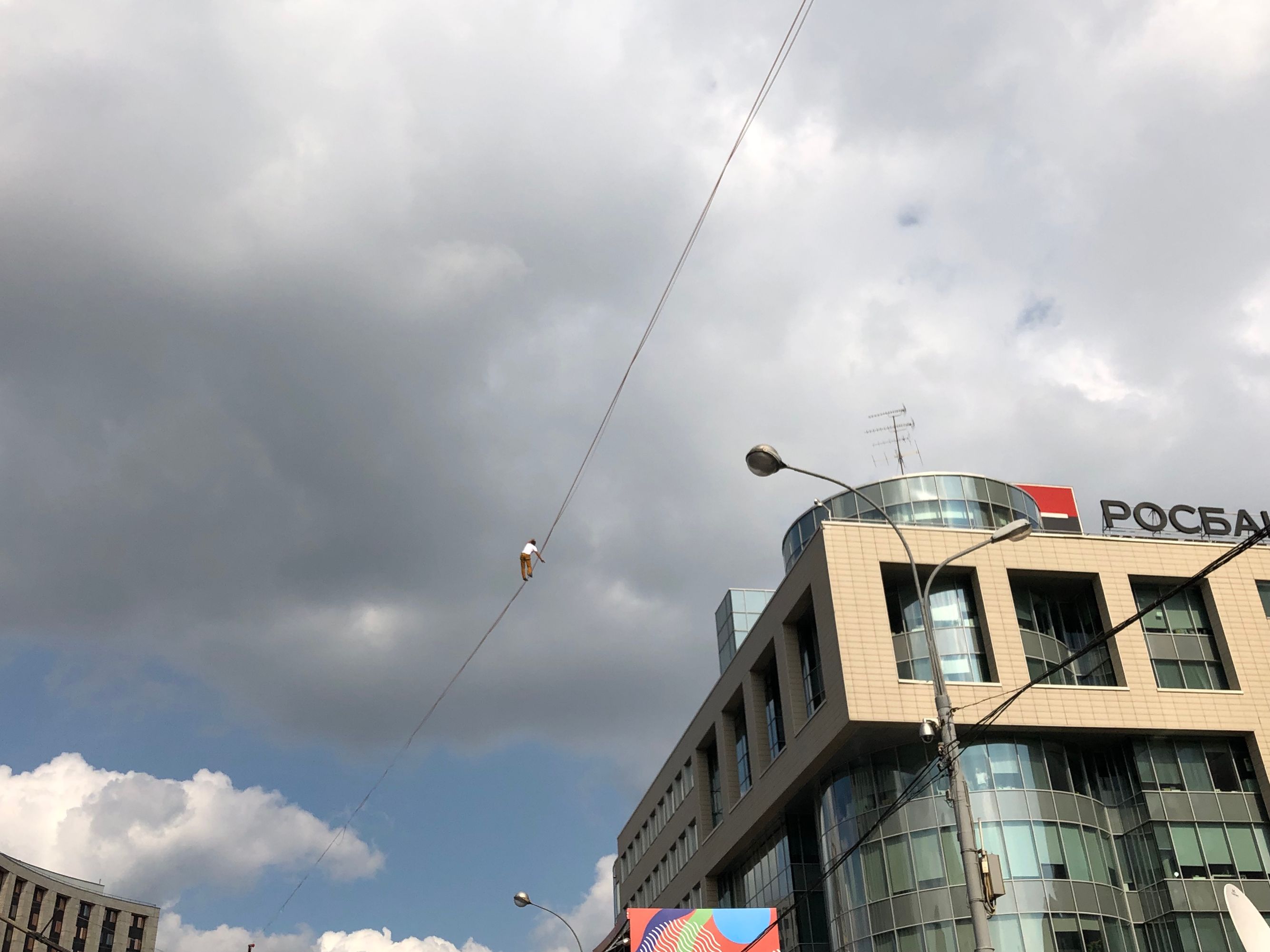 Напротив сцены на проспекте Сахарова канатоходец!