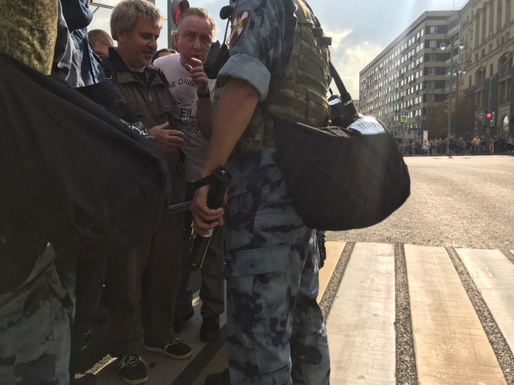 Самый известный сотрудник Центра по противодействию экстремизму МВД Алексей Окопный тоже пришел на акцию.
