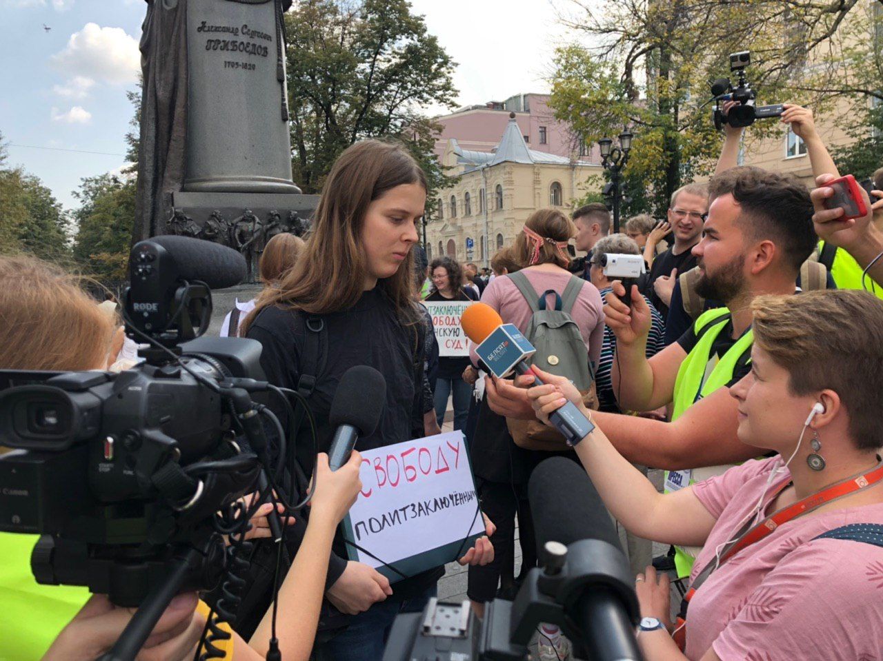 При этом на Пушкинской площади люди продолжают преследовать корреспондента ВГТРК.