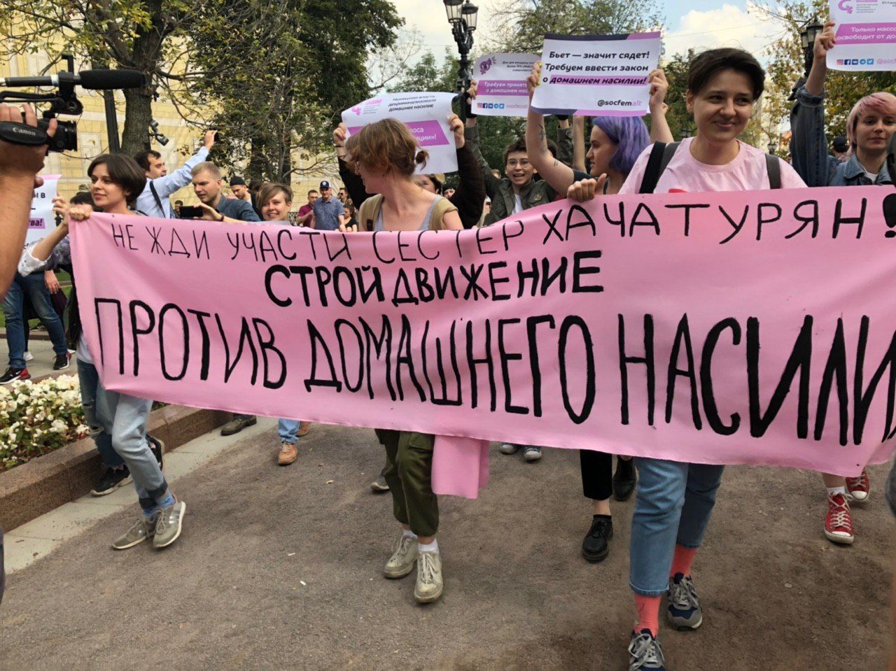 К протестующим примкнули в том числе активисты, выступающие в защиту сестер Хачатурян.