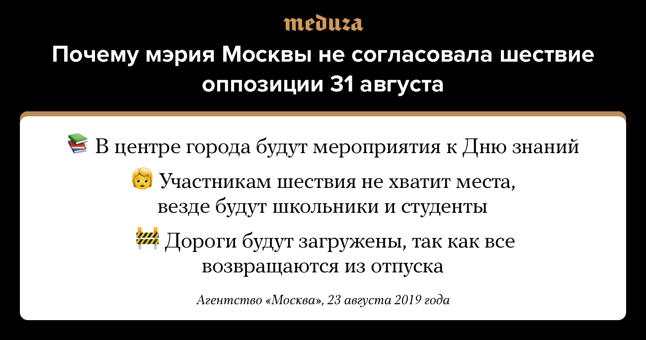 Стоит отметить, что корреспонденты «Медузы» не увидели ни на одном из бульваров фестивалей «Цветочный джем» или подготовку к Дню знаний. Хотя мэрия утверждала, что все бульвары будут настолько заняты, что шествие невозможно.