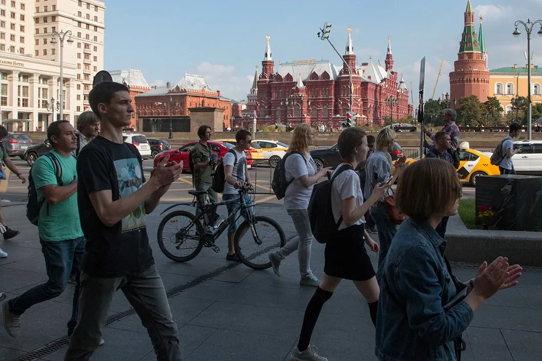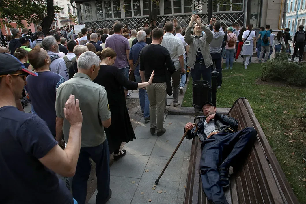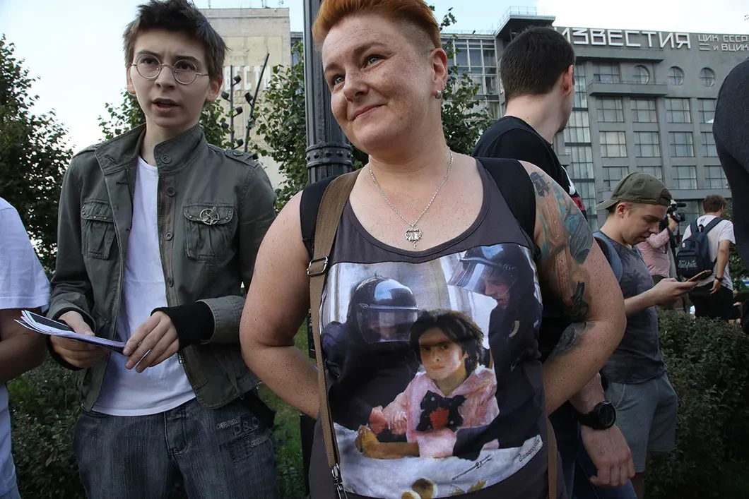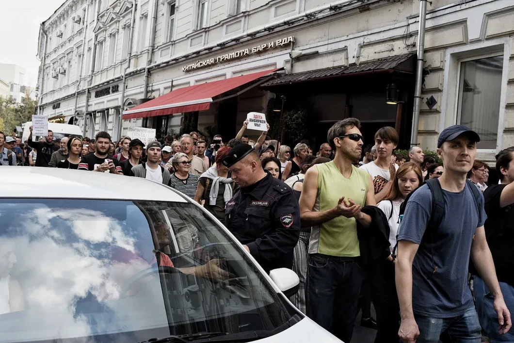 Шествие должно было начаться от памятника Грибоедову. Один из участников наизусть цитировал монолог Чацкого. Фото: Виктория Одиссонова / «Новая газета»Аплодисменты стали сигналом к началу движения. Люди начали скандировать: «Отпускай!». Фото: Виктория Одиссонова / «Новая газета»Фото: Анна Артемьева / «Новая газета»Начало шествия. Фото: Анна Артемьева / «Новая газета»Прогуливающиеся приветствуют московского бездомного. Фото: Анна Артемьева / «Новая газета»Фото: Анна Артемьева / «Новая газета»Полиция никак не препятствовала движению шествия, иногда лишь делала замечания, чтобы люди не выходили на проезжую часть. На шествие откликались и некоторые водители — они сигналили в такт кричалкам. Фото: Виктория Одиссонова / «Новая газета»Шутник на Трубной. Фото: Светлана Виданова / «Новая газета»Любовь Соболь отвечает на вопрос, почему ее до сих пор не задержали. Фото: Виктория Одиссонова / «Новая газета»Уже у Пушкинской росгвардейцы выстроились в длинную цепь и исключили выход людей на проезжую часть. На некоторое время люди оказались в оцеплении и не могли никуда выйти. Но задержаний не было, и цепь скоро разомкнулась. Фото: Виктория Одиссонова / «Новая газета»Феминистка на Пушкинской площади с шутливым принтом на майке. Фото: Анна Артемьева / «Новая газета»Феминистки на Пушкинской. Фото: Светлана Виданова / «Новая газета»Шествие вдоль оцепления Росгвардии. Фото: Анна Артемьева / «Новая газета»Фото: Светлана Виданова / «Новая газета»Скандируют: «Мы без оружия!». Подсолнухи для Любови Соболь. Фото: Анна Артемьева / «Новая газета»Пушкин и протестующие. Фото: Анна Артемьева / «Новая газета»Гоголь и протестующие. Фото: Анна Артемьева / «Новая газета»Вряд ли этот кадр войдет в репортаж телеканала «Россия». Фото: Анна Артемьева / «Новая газета»Шествие на Моховой. Фото: Светлана Виданова / «Новая газета»Вознесенский храм у Никитских ворот. Фото: Светлана Виданова / «Новая газета»У водопоя на Гоголевском бульваре. Фото: Светлана Виданова / «Новая газета»Увлеченные протестующие гуляли до позднего вечера. Никто не был задержан. Фото: Виктория Одиссонова / «Новая газета»