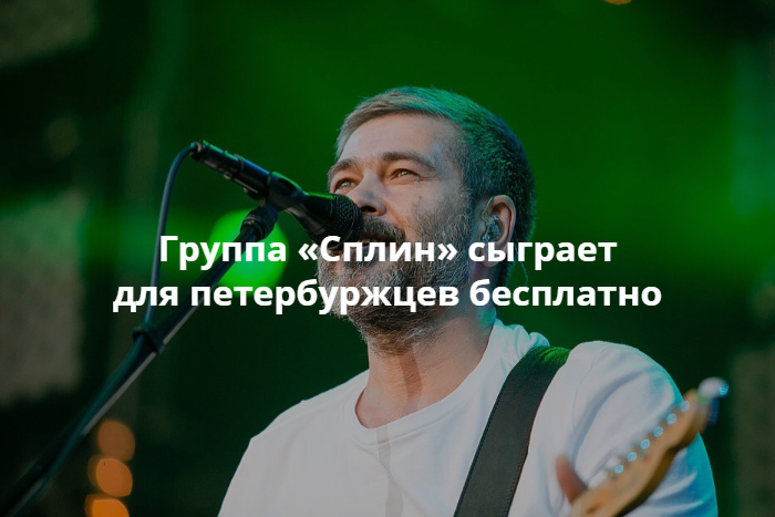 Группа «Сплин» 31 августа даст бесплатный концерт на Дворцовой площади. Об этом сообщается в группе благотворительного фестиваля «Будь с городом!» во «Вконтакте».