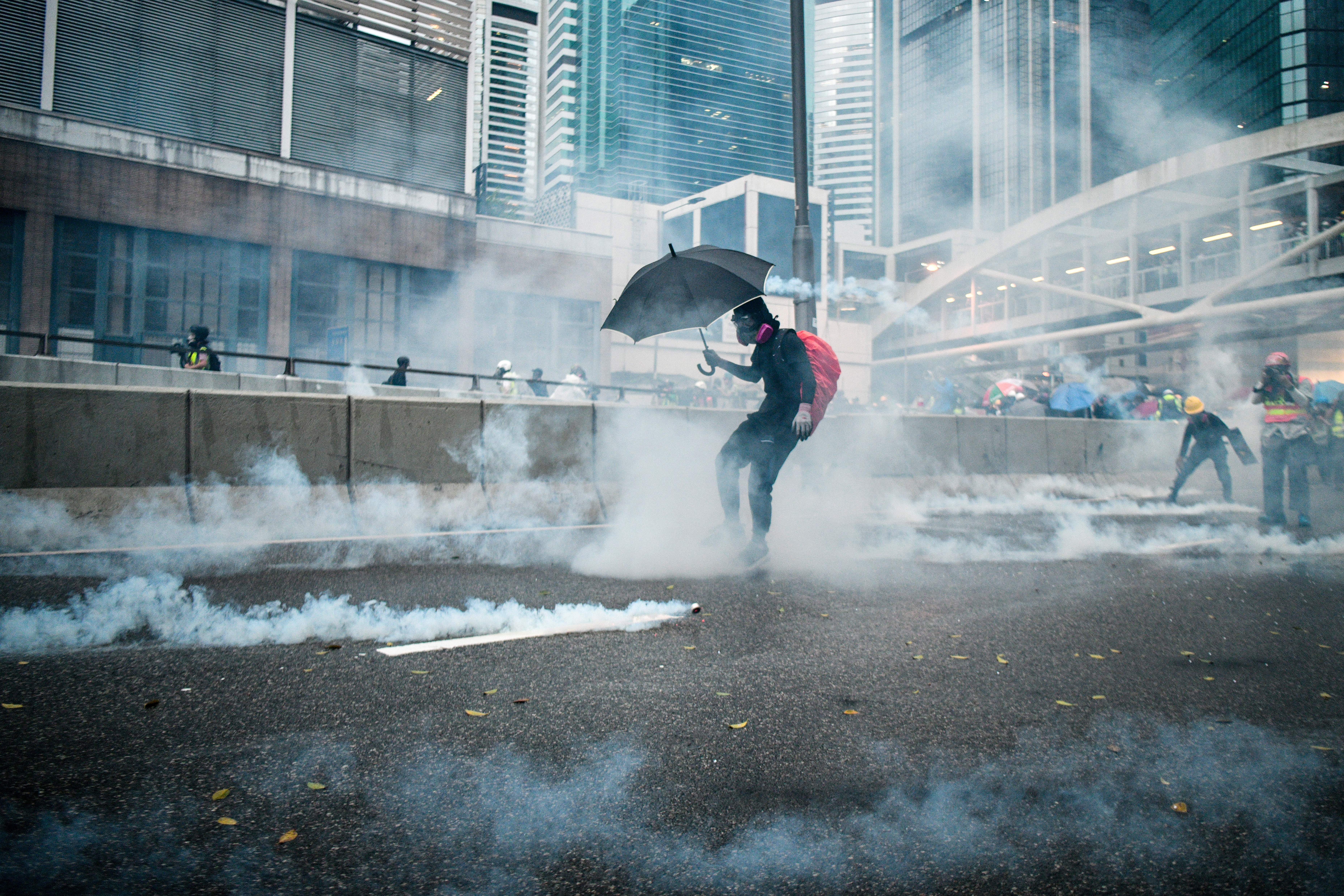 Акции протеста в городе продолжаются 13-ю неделю, участники выступают за отзыв законопроекта об экстрадиции подозреваемых в преступлениях судам континентального Китая и против превращения живущего по британскому праву и на особых условиях Гонконга в типичный китайский город.