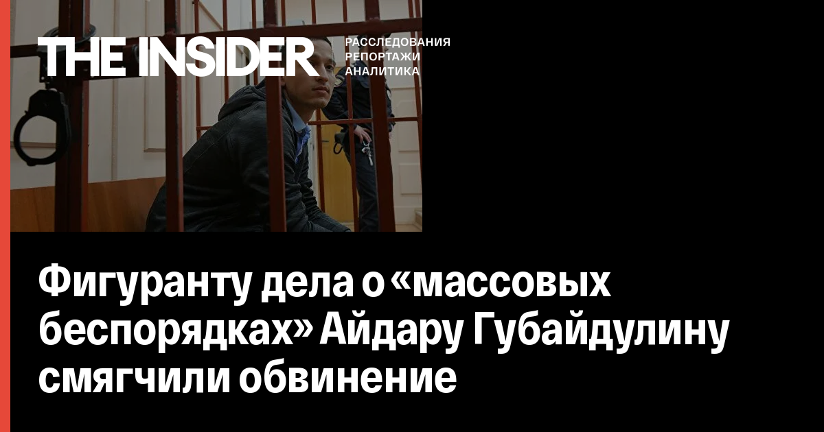 СК предъявил обвинение Айдару Губайдулину, которому вменялось участие в массовых беспорядках, по более мягкой статье — о покушении на насилие в отношении представителя власти. Об этом сообщил адвокат Максим Пашков.