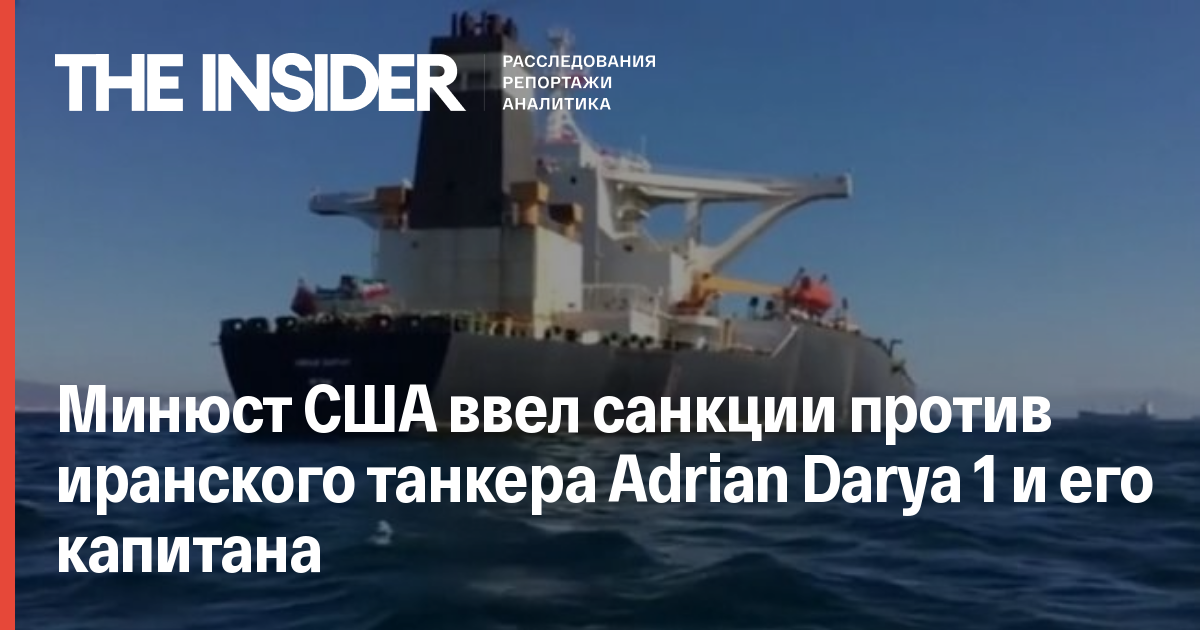 Управление по контролю за иностранными активами Министерства финансов США внесло в санкционный список иранский нефтяной танкер Adrian Darya 1 и его капитана Акхилеша Кумара.