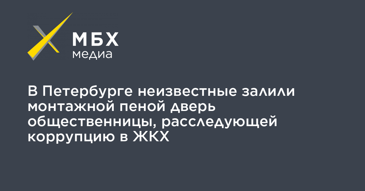 В Петербурге неизвестные залили монтажной пеной дверь в квартиру общественницы Светланы Сивец, которая расследует факты коррупции в сфере ЖКХ. Как рассказал «МБХ медиа» координатор движения «Красивый Петербург» Красимир Врански, сама Сивец в этот момент находилась внутри.