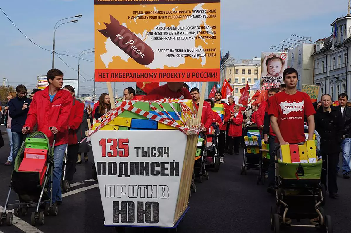 В широком смысле ювенальная юстиция — это судебно-правовая система защиты прав несовершеннолетних. Члены РВС считают ее «системой законодательства, которая позволяет чиновникам произвольно вмешиваться в дела семьи», как сказала «МБХ медиа» член центрального совета РВС Жанна Тачмамедова. Идеолог движения Сергей Кургинян, он же лидер лево-патриотического движения «Суть времени», об этих законопроектах говорил так: «Это будет такое же вторжение в семью, как вторжение НАТО в Ливию». Активисты движения собрали 260 тысяч подписей и передали их в Администрацию президента. Законопроекты были отклонены. А в 2013 году на учредительном собрании РВС с речью выступил Владимир Путин: «Мнение общества, безусловно, будет услышано и учтено. В этих вопросах не может быть места никакой келейности и навязывания при принятии подобных проектов».