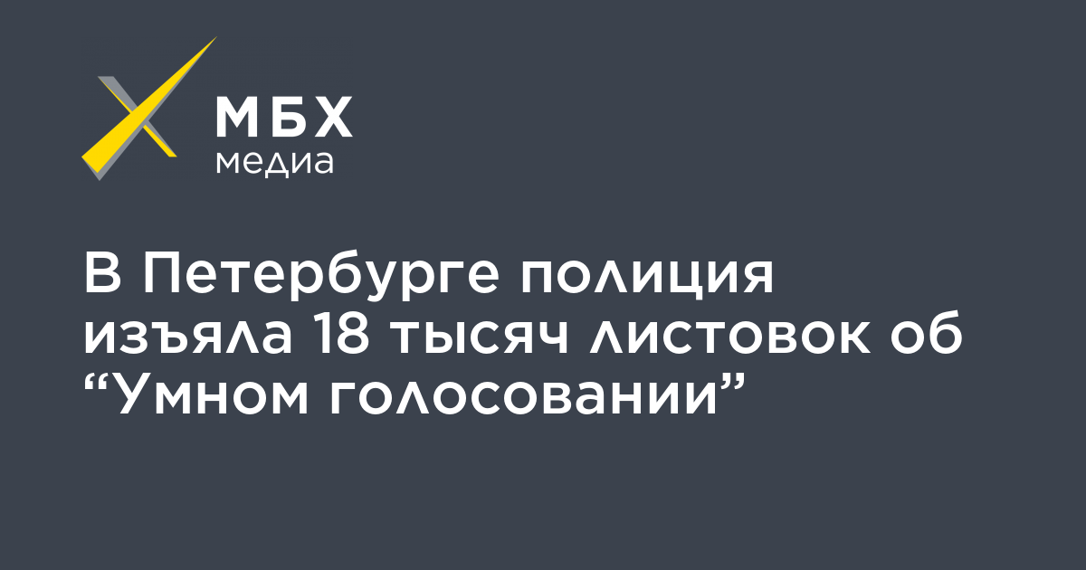 В Санкт-Петербурге полиция изъяла 18 тысяч листовок об «Умном голосовании» Алексея Навального у местного активиста Александра Шумилова. Об этом «МБХ медиа» рассказал журналист «Эхо Петербург» Арсений Веснин.