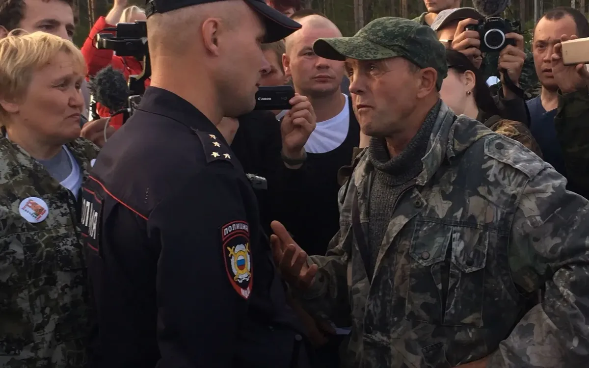 Между тем полиция уже пыталась потребовать от активистов покинуть территорию — пока лишь с помощью бумаг без подписи и печати, требующих свернуть палаточный городок. Следом за полицейскими с теми же требованиями являлись неизвестные, представившиеся служащими регионального министерства лесного хозяйства. Затем снова пришла полиция — делать замеры пеньков в округе. Уголовное дело по факту незаконной вырубки леса возбуждено по заявлению активистов много месяцев назад, подозреваемого до сих пор нет. Ну не может следствие выяснить, кто же срубил все деревья под стройплощадкой, часть из которых, кстати, на этой самой стройплощадке и лежит. Не придется удивляться, если изощренный ум правоприменителей в итоге объявит черными лесорубами самих экоактивистов. По крайней мере, это будет вполне соответствовать действиям полиции в Шиесе. Пока она лишь декорирует действия нанятой подрядчиком частной охранной фирмы. Работают люди в форме с шевронами «Гарант безопасности».