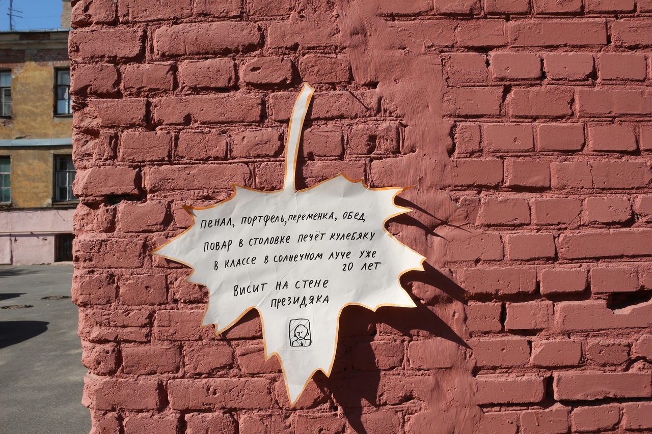 К 1 сентября активисты из группы «УРодины» развесили на стенах зданий в Петербурге, в том числе на школах, стихи о проблемах современных учеников и российского образования. В них говорят о митингах, коррупции и сексизме.